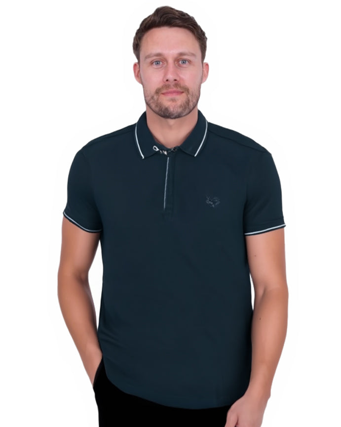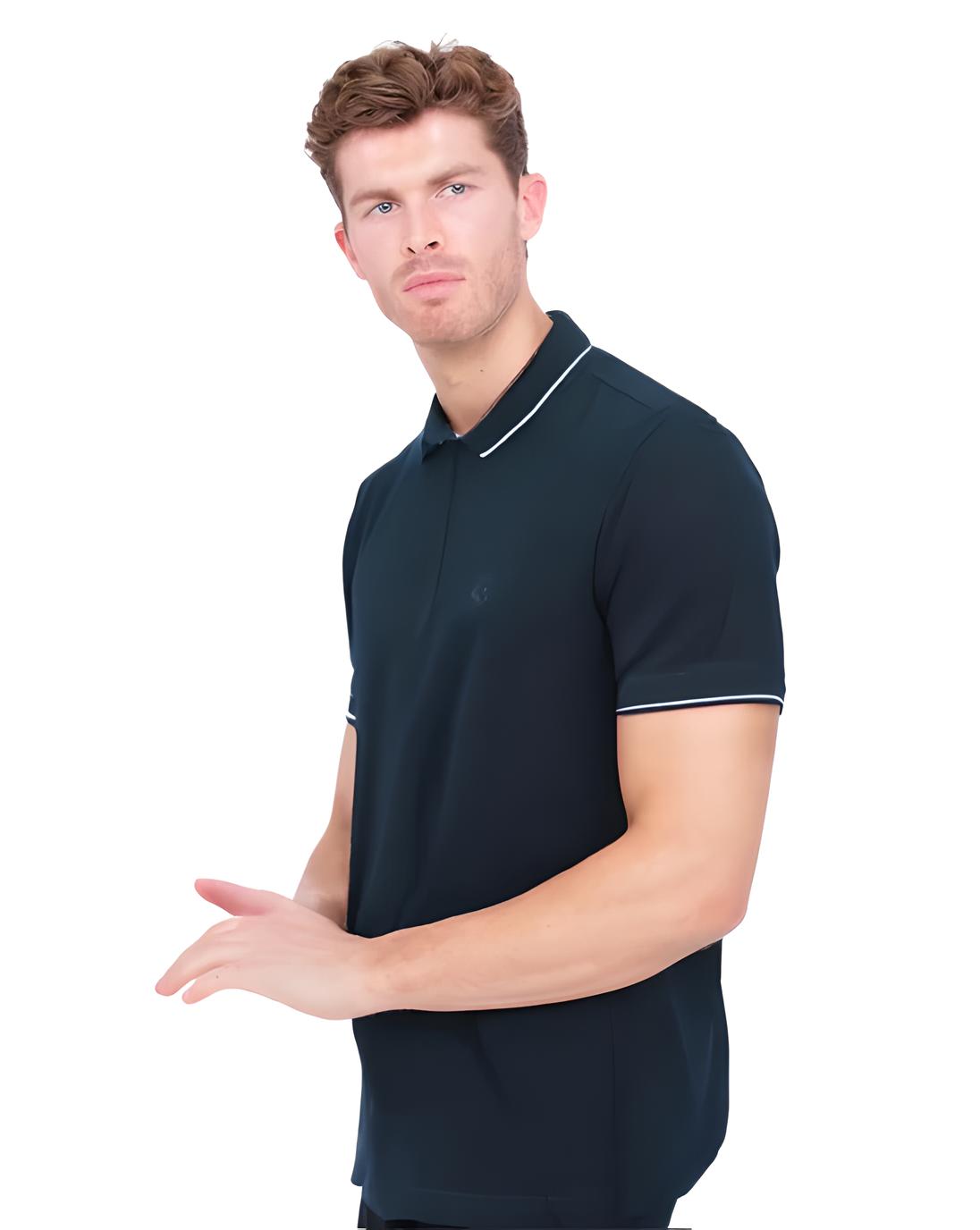 Dark Blue Classic Polo T-Shirt With Contrast Collar