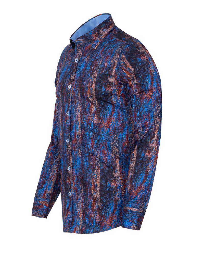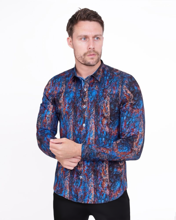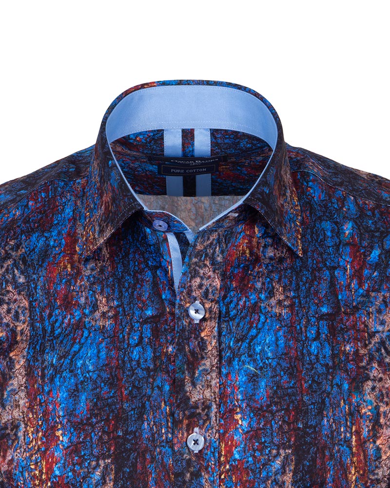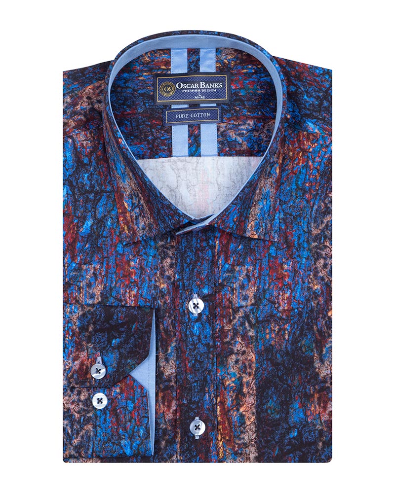 Introducing the Dark Blue Crust Print Men's Shirt, a perfect blend of style and sophistication. Crafted from 100% satin cotton, this shirt offers a luxurious feel and exceptional comfort.