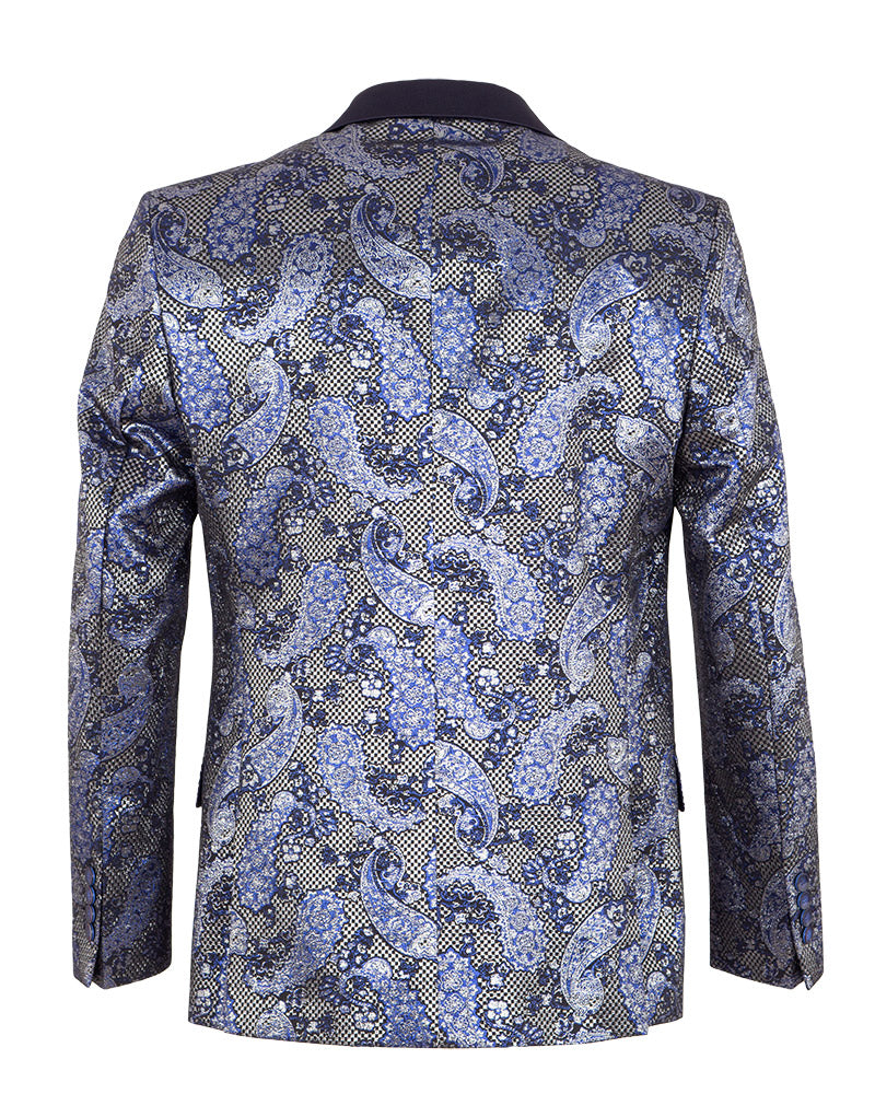 Introducing the Dark Blue Paisley Flock Design Fashion Blazer, a stylish addition to any wardrobe. Crafted from a blend of 67% viscose and 33% polyester, this blazer offers both comfort and elegance.