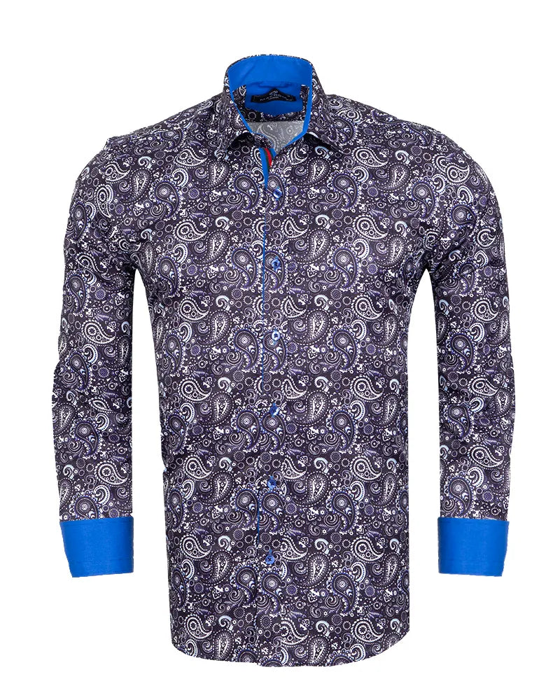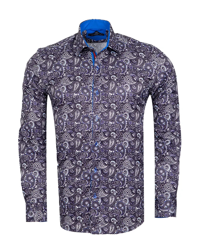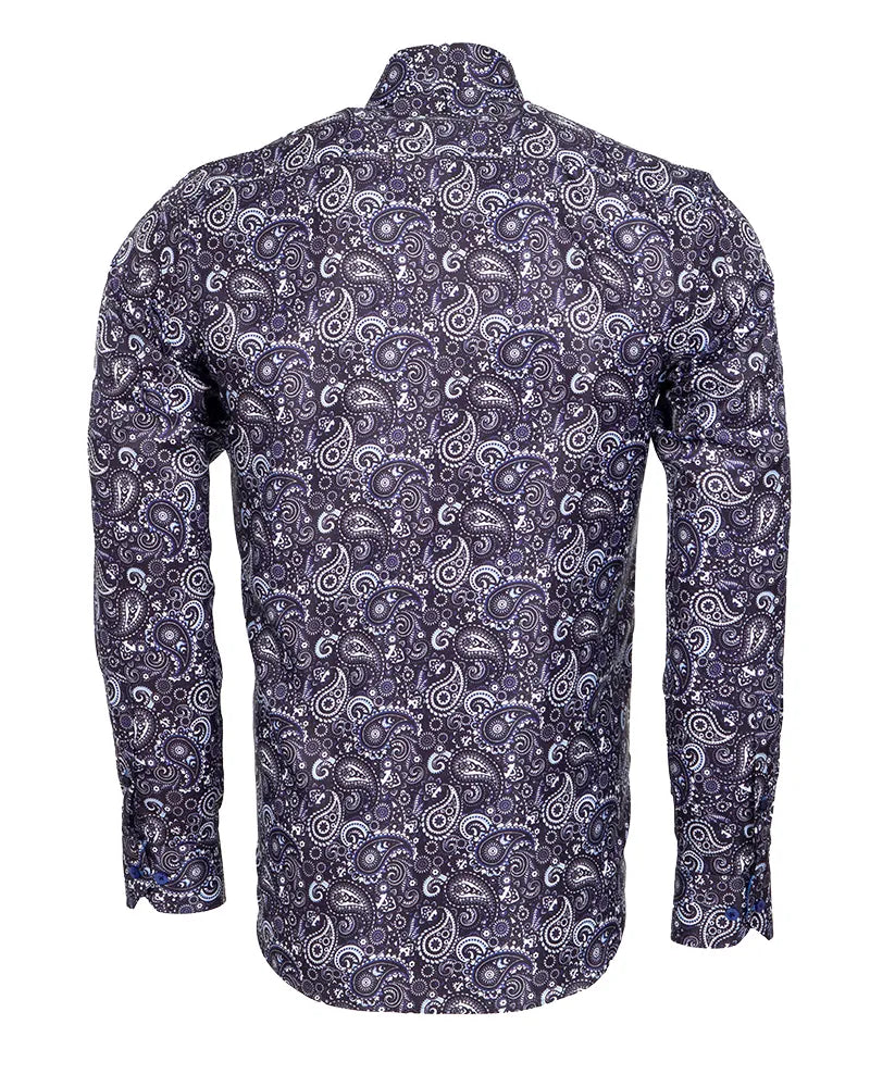 Dark Blue Fashion Paisley Print Long Sleeve Shirt