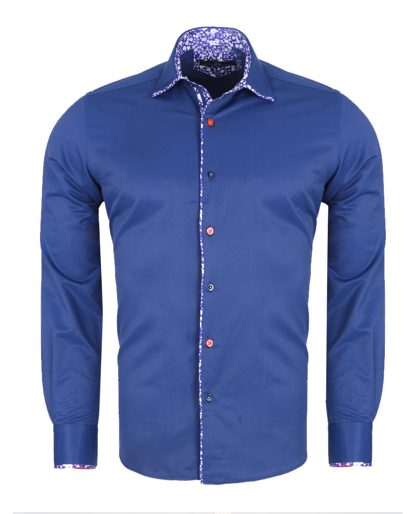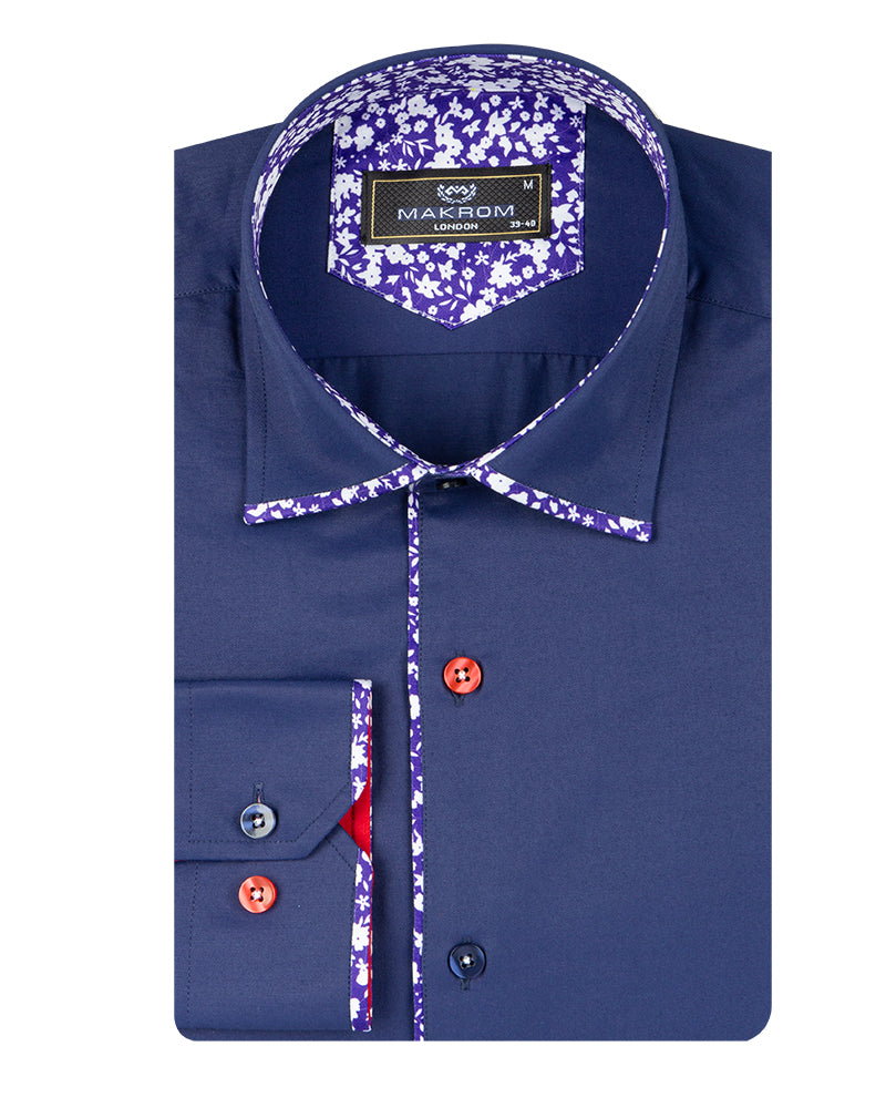 Dark Blue Fashion Shirt with Floral Collar Tip Design