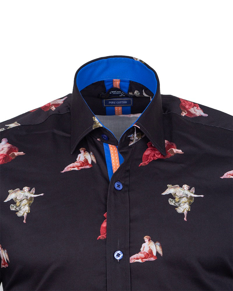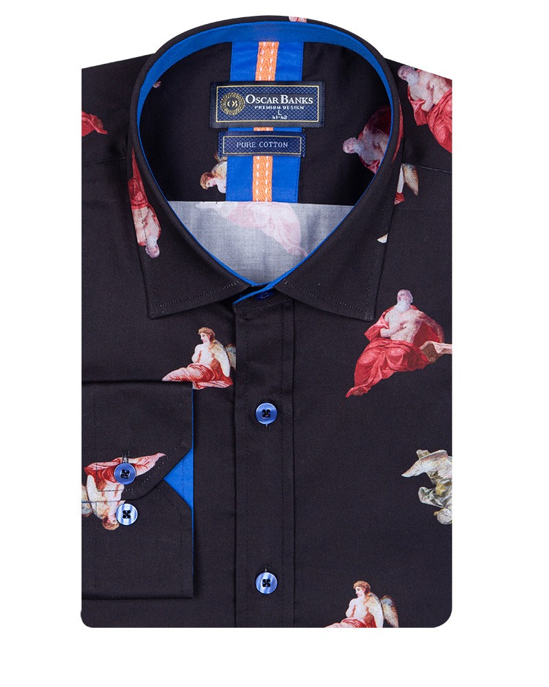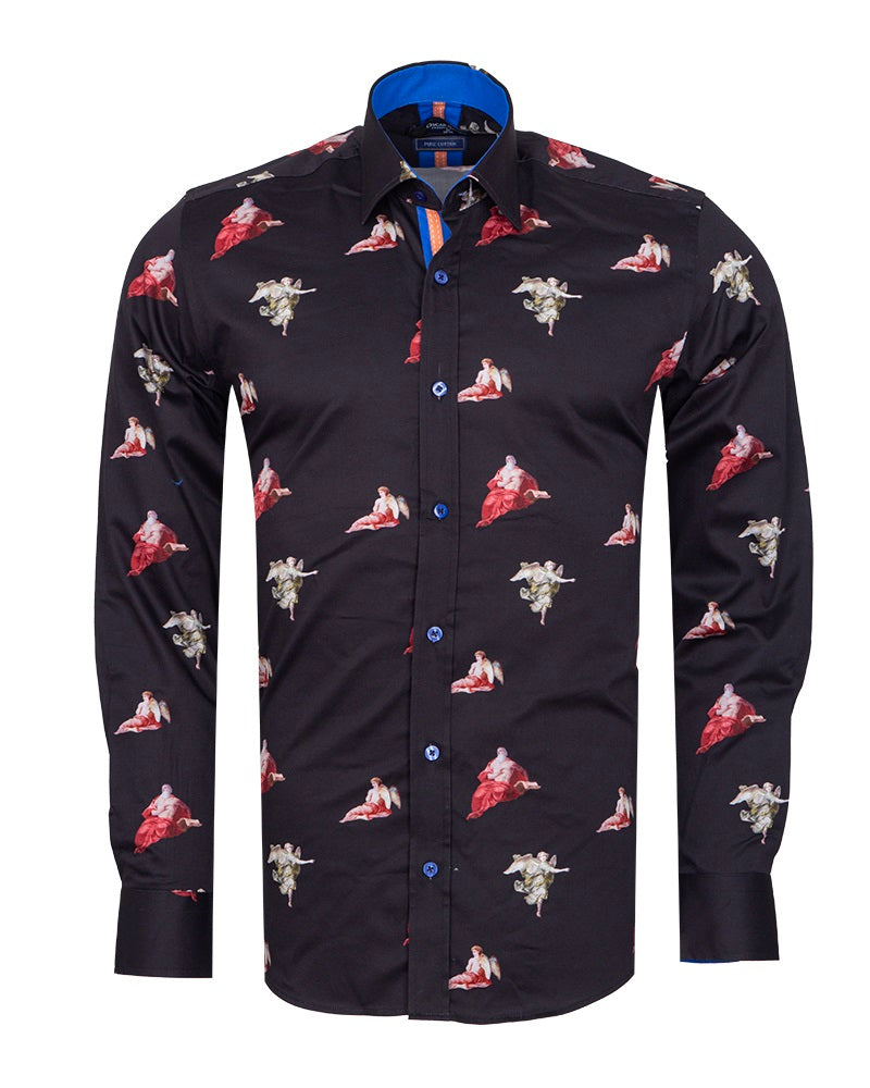 Black Historic Masterpiece Print Men's Shirt with Matching Handkerchief