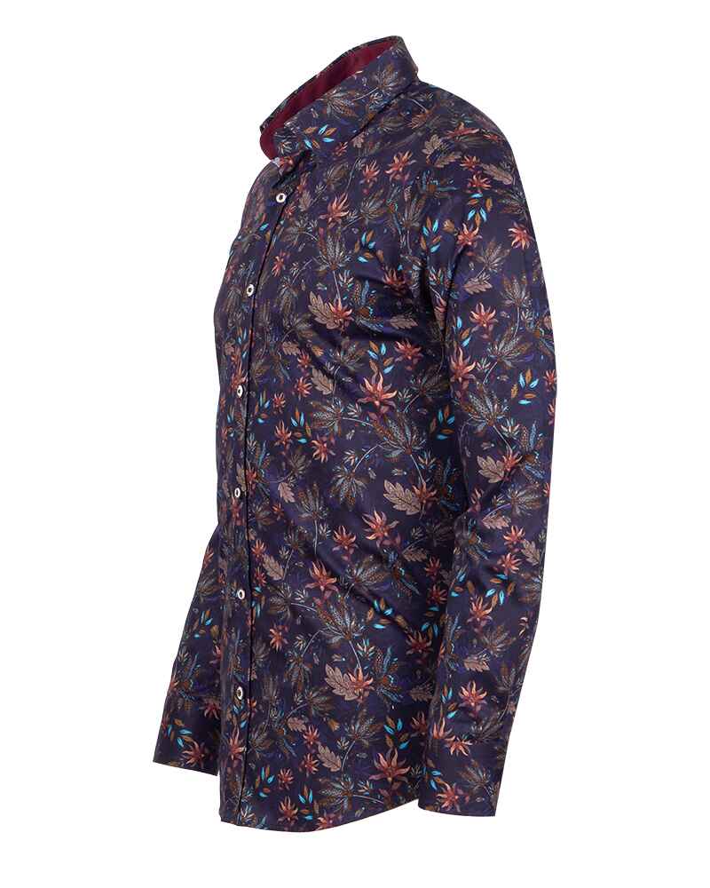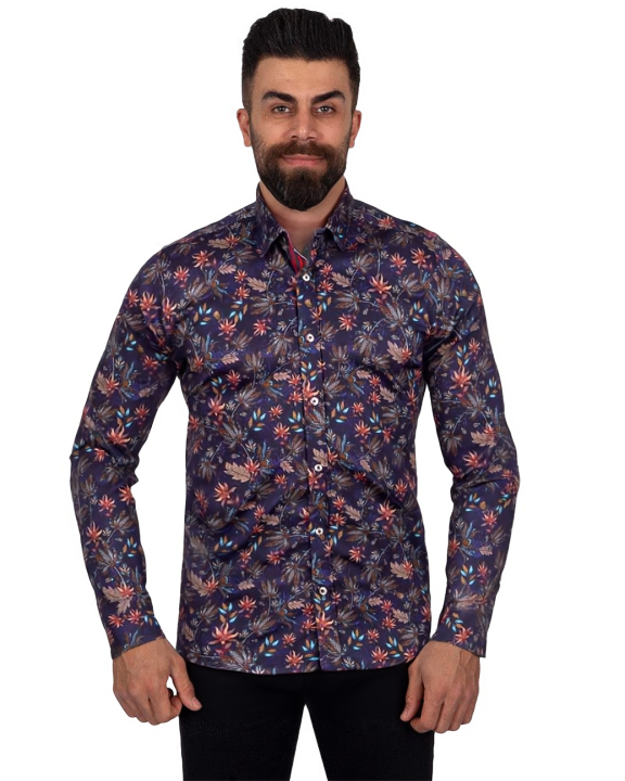 Introducing the Dark Blue Leaf Print Men's Shirt with Matching Handkerchief, a perfect blend of style and sophistication. Crafted from 100% satin cotton, this shirt offers a luxurious feel and exceptional comfort.