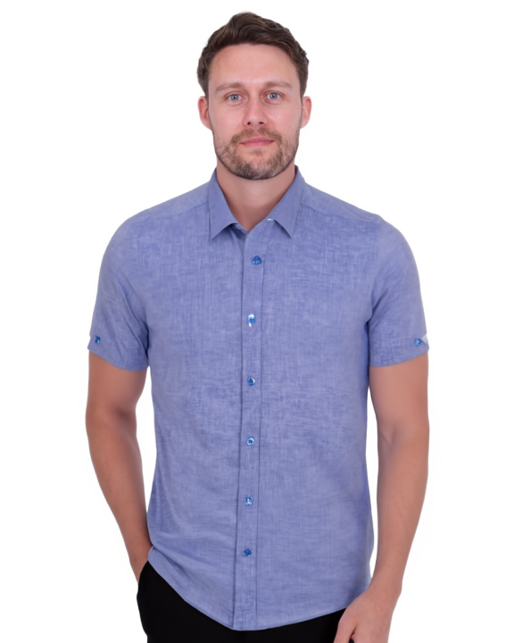 Introducing the Dark Blue Linen Plain Short Sleeve Shirt, a perfect blend of style and comfort. Crafted from 100% linen, this shirt offers breathability and a lightweight feel, making it ideal for warm weather.