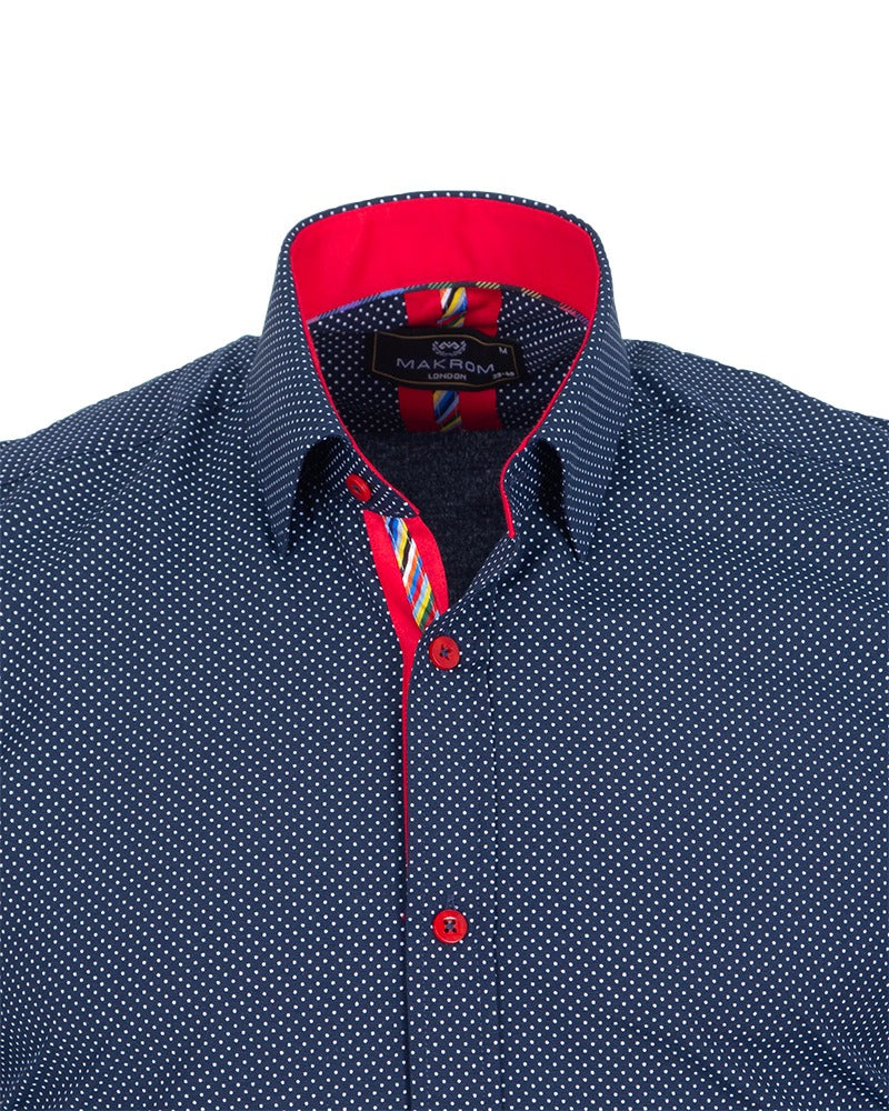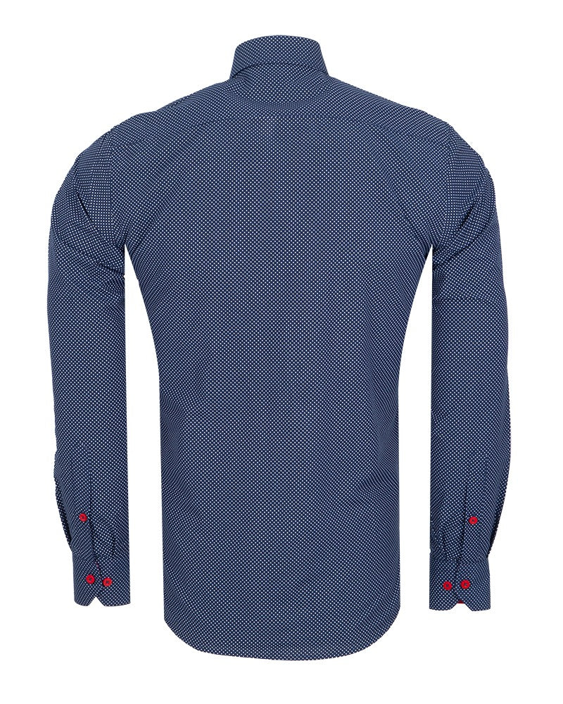 Dark Blue Micro Dotted Mosaic Print Shirt