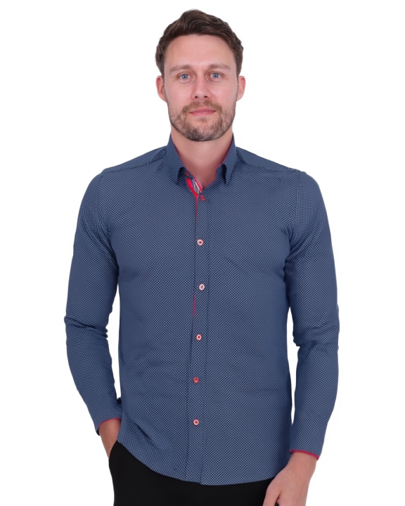 Introducing the Dark Blue Micro Dotted Mosaic Print Shirt, a stylish addition to any wardrobe. This shirt features a unique dotted print design that adds a touch of sophistication.