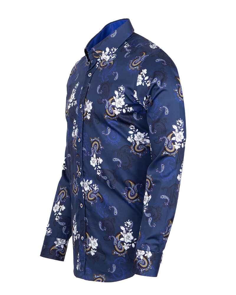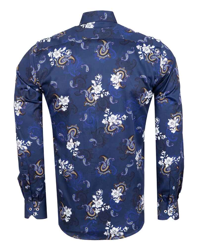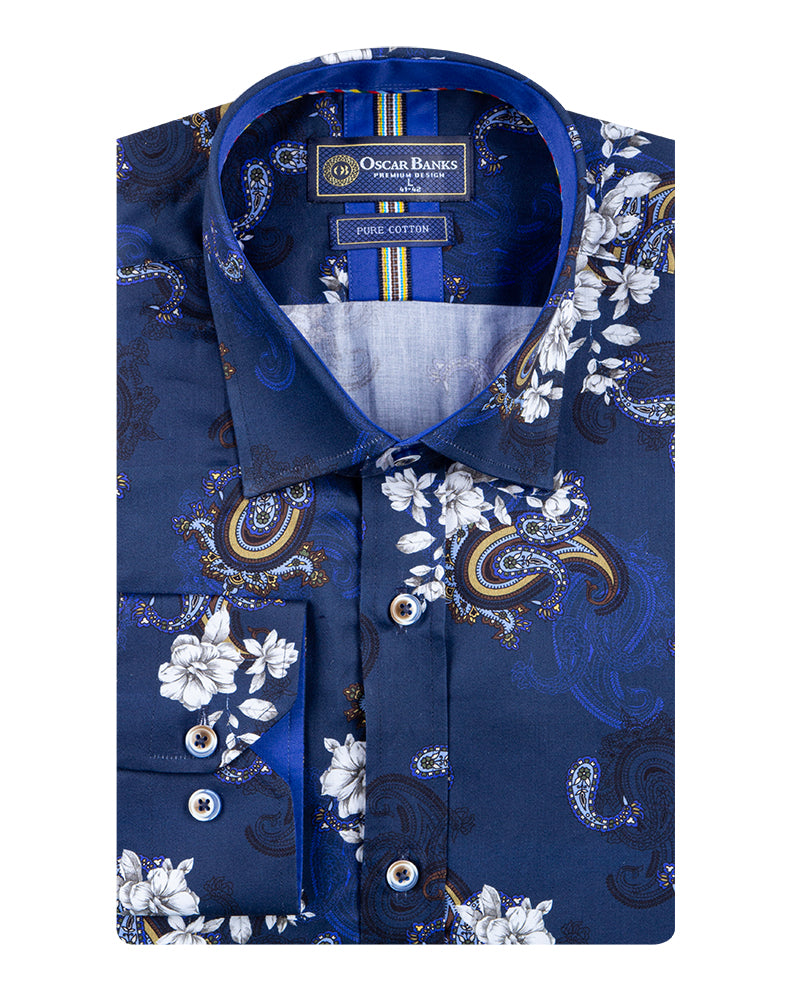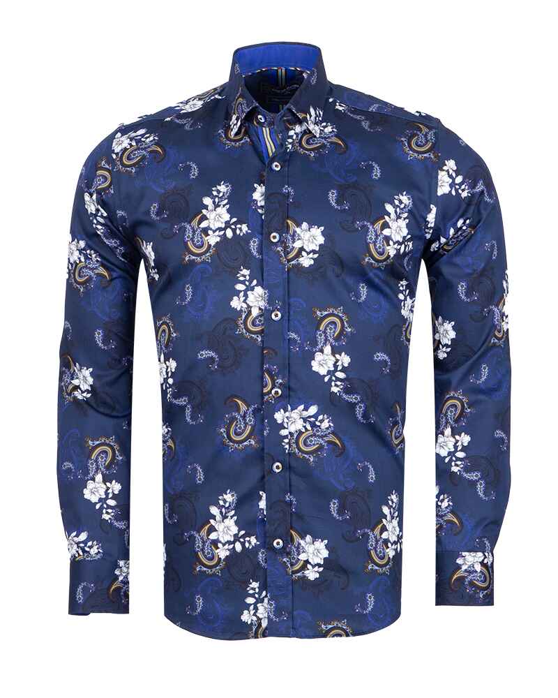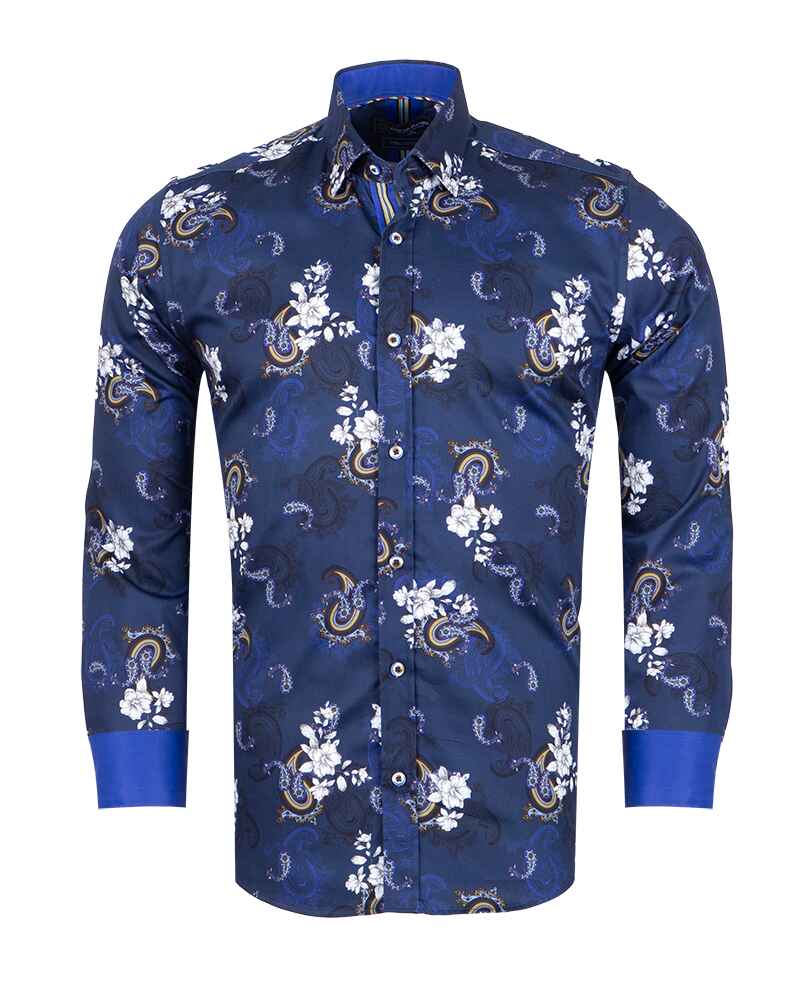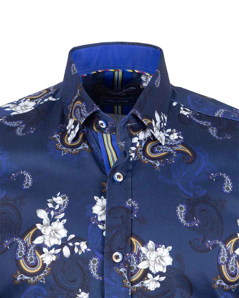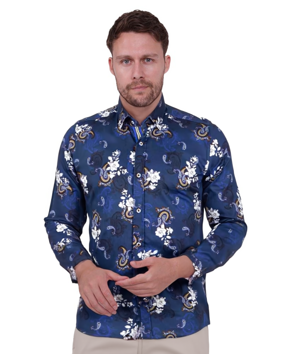 Elevate your wardrobe with the Dark Blue Paisley Print Men's Shirt, a perfect blend of style and sophistication. Crafted from 100% satin cotton, this shirt offers a luxurious feel and a polished look.