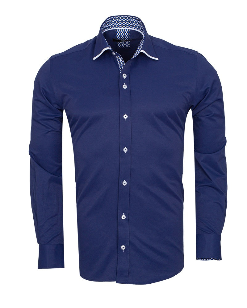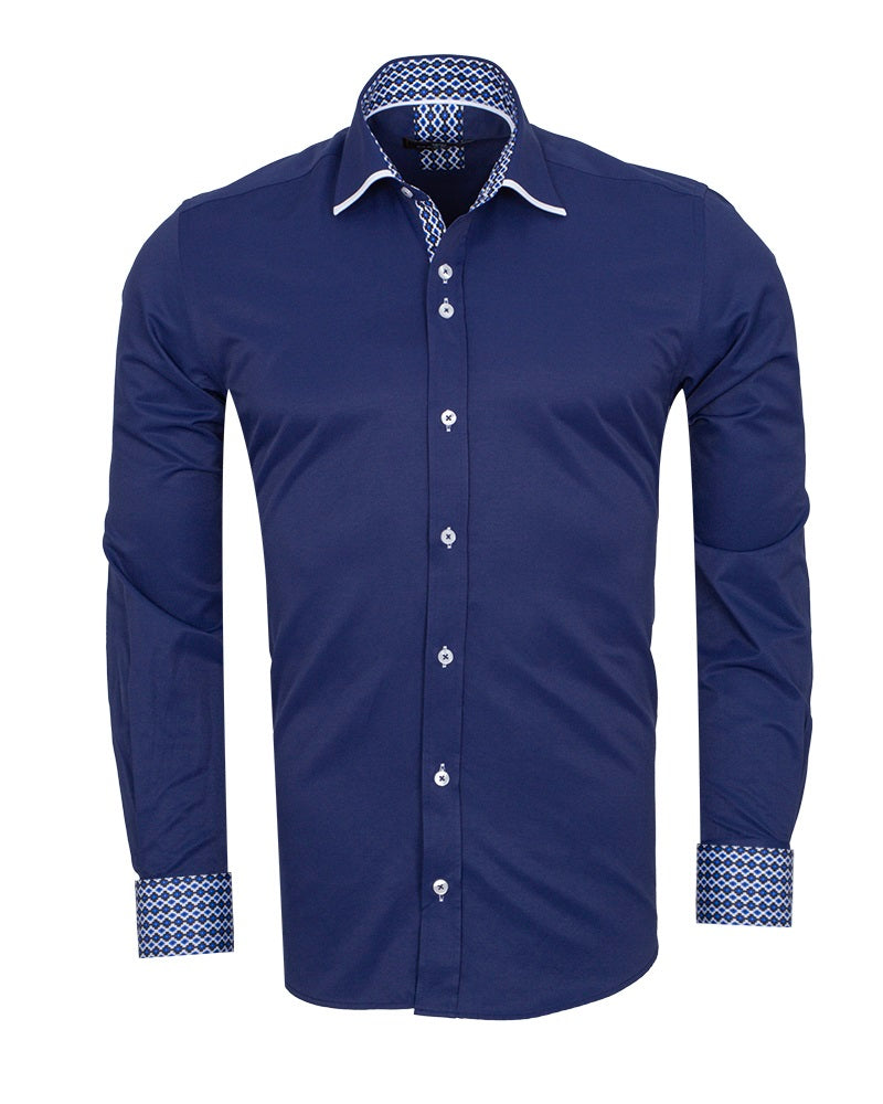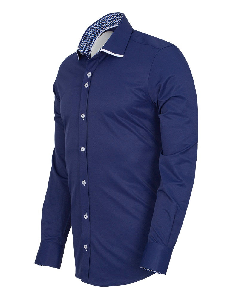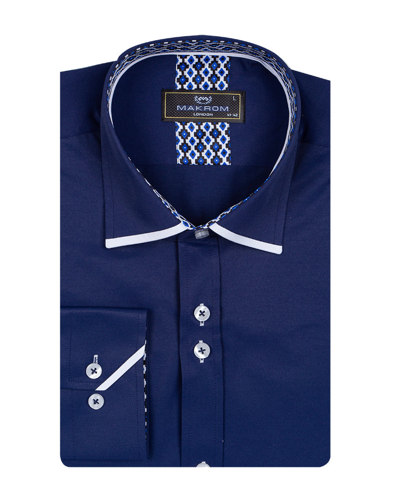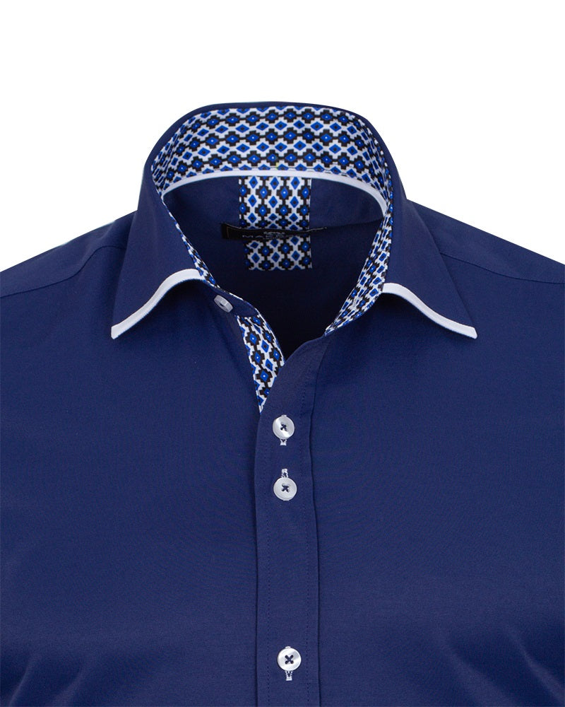 Dark Blue Plain Panel Shirt with Floral Insert & collar tip design