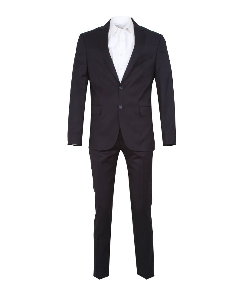 Dark Blue Pure Wool Classic Plain 3 Piece Men's Suit