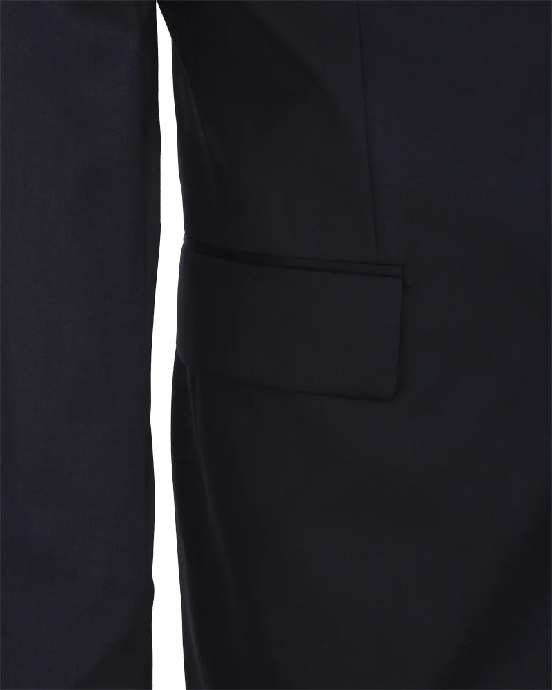 Featuring a classic design, it includes a pocket tie and a two-button closure for a sophisticated look. The single vent adds to its tailored appeal, ensuring a flattering fit.