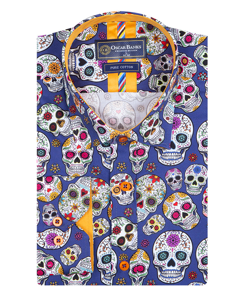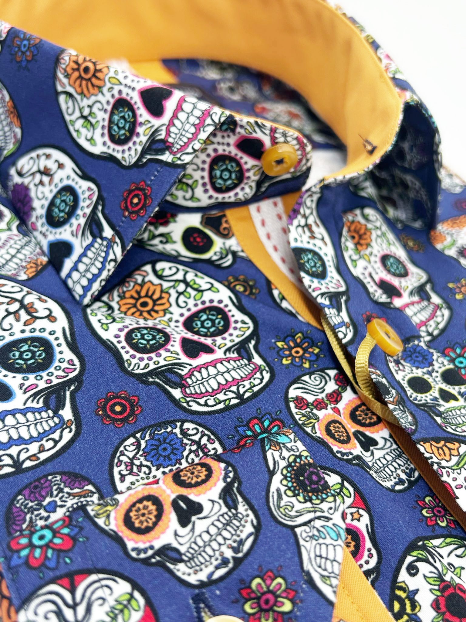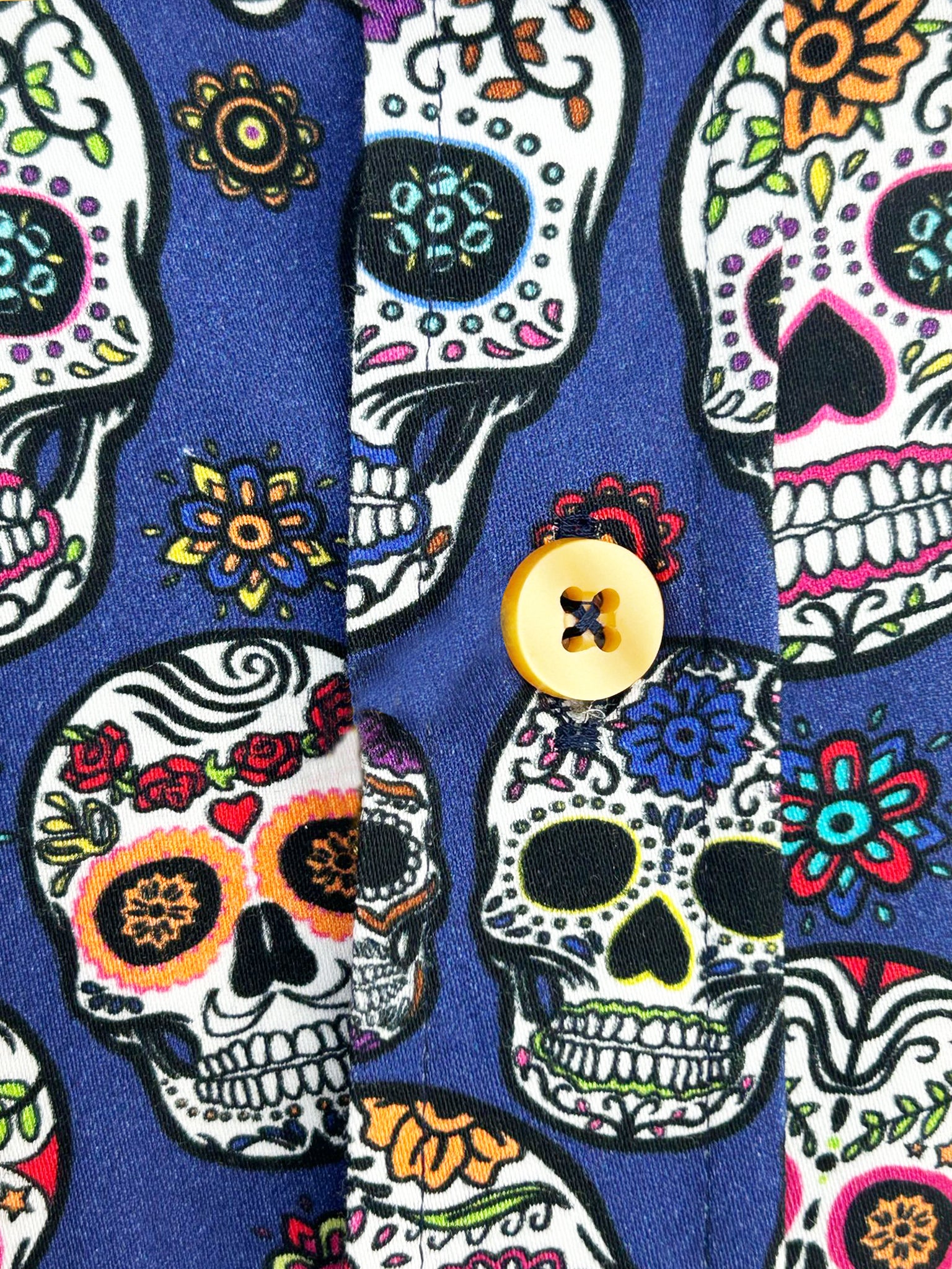 Dark Blue day of the dead Skull Print Shirt with Matching Handkerchief