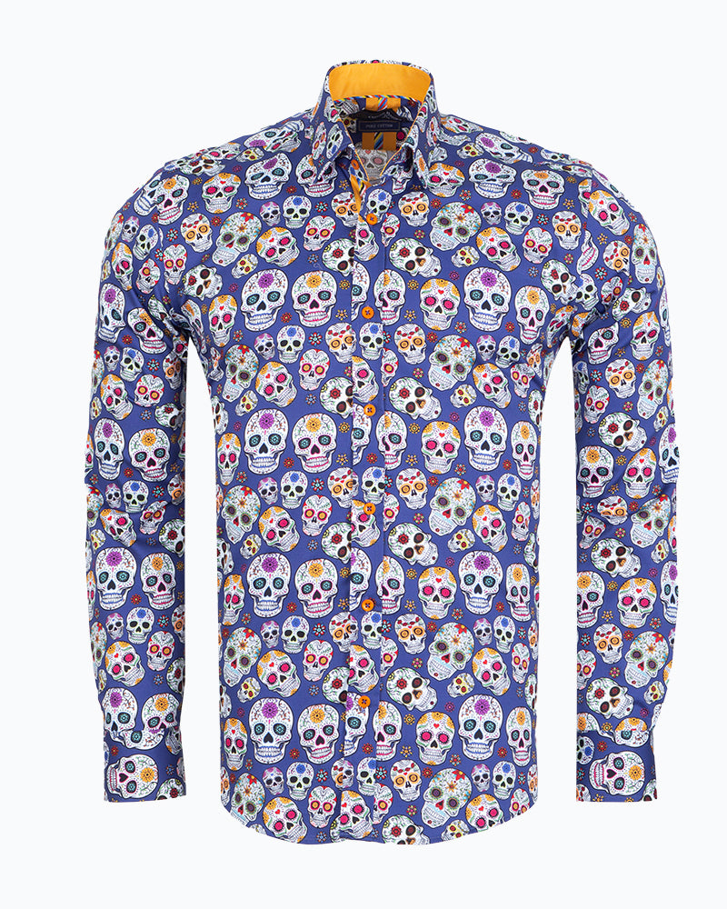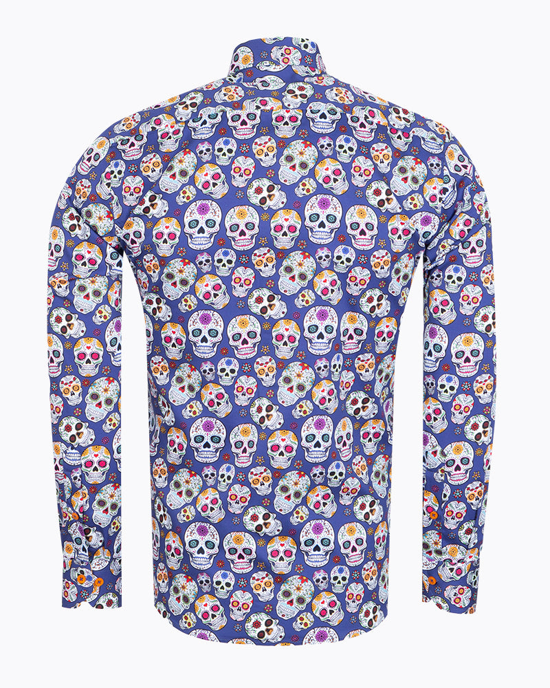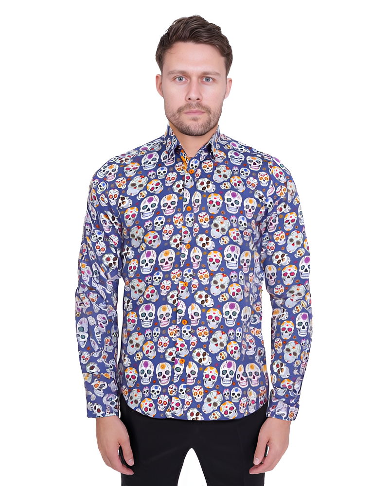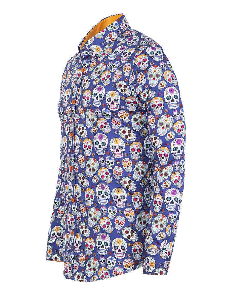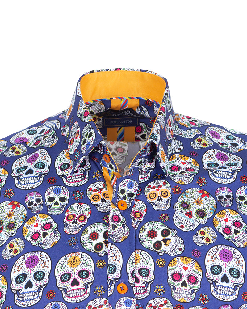 Dark Blue day of the dead Skull Print Shirt with Matching Handkerchief