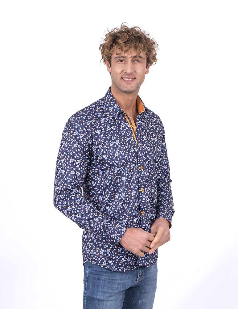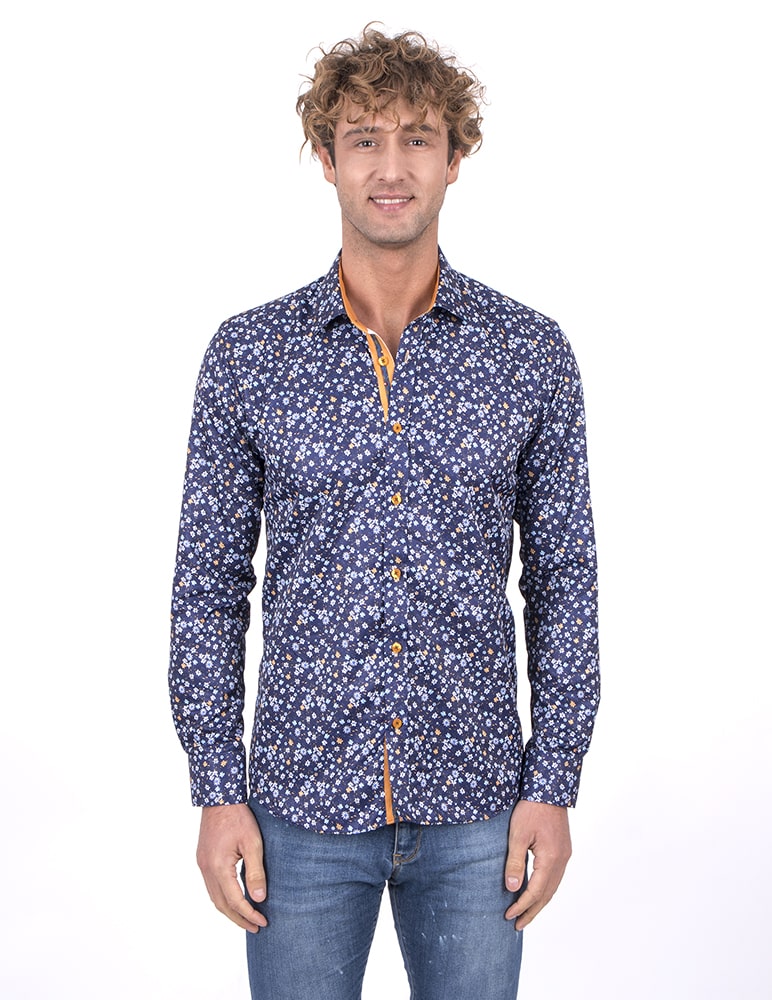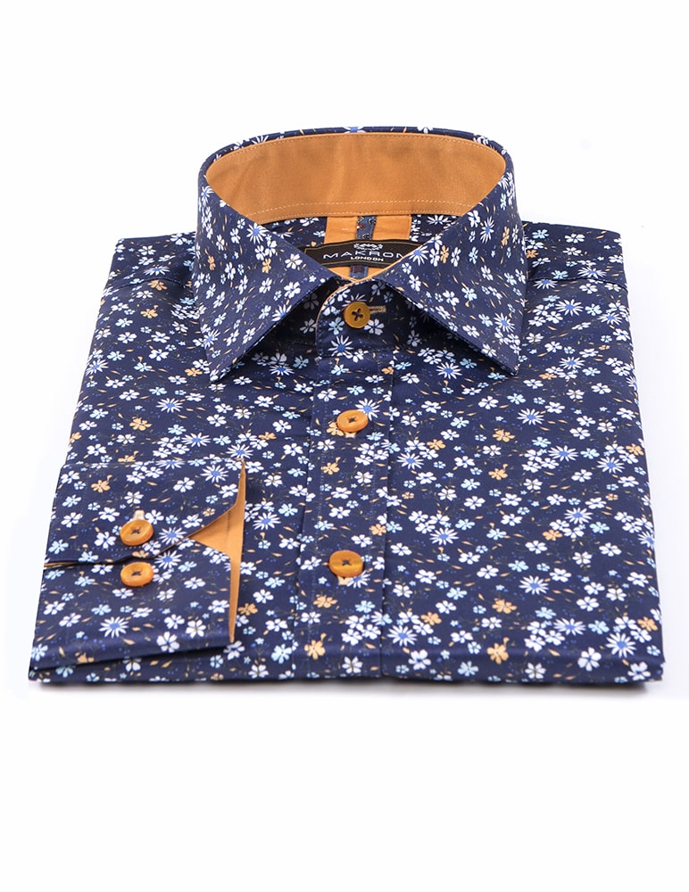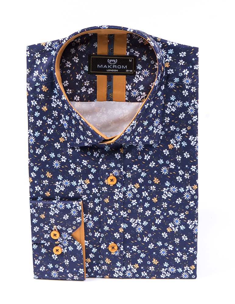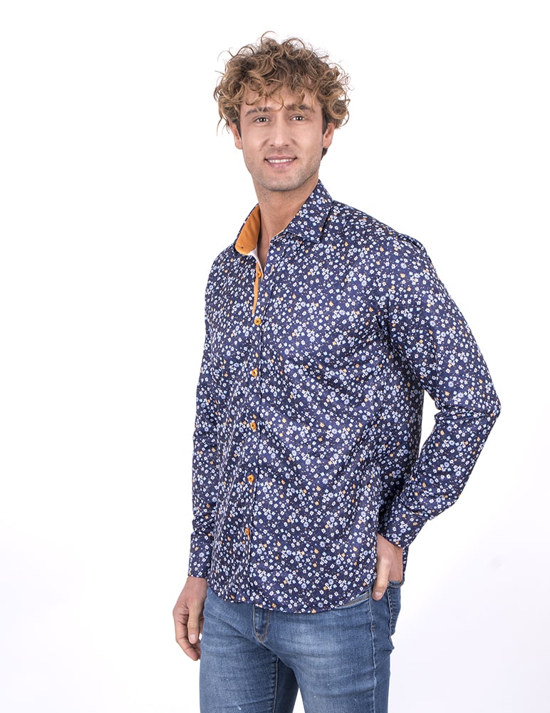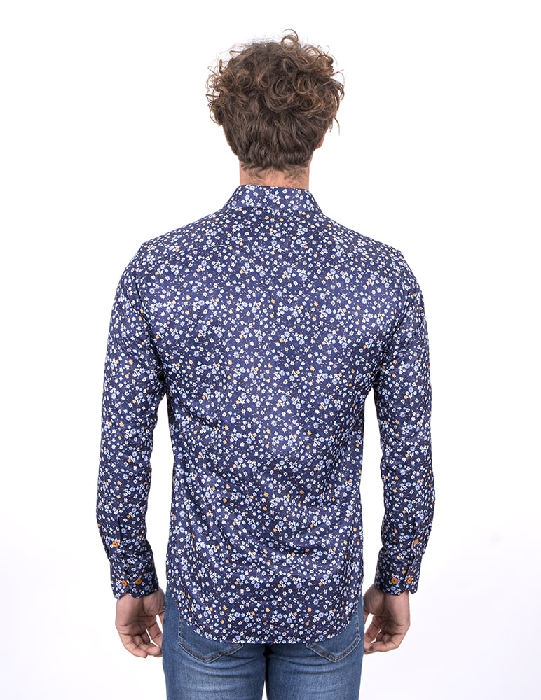 This stylish shirt features a dark blue floral print, adding a touch of sophistication to your wardrobe.