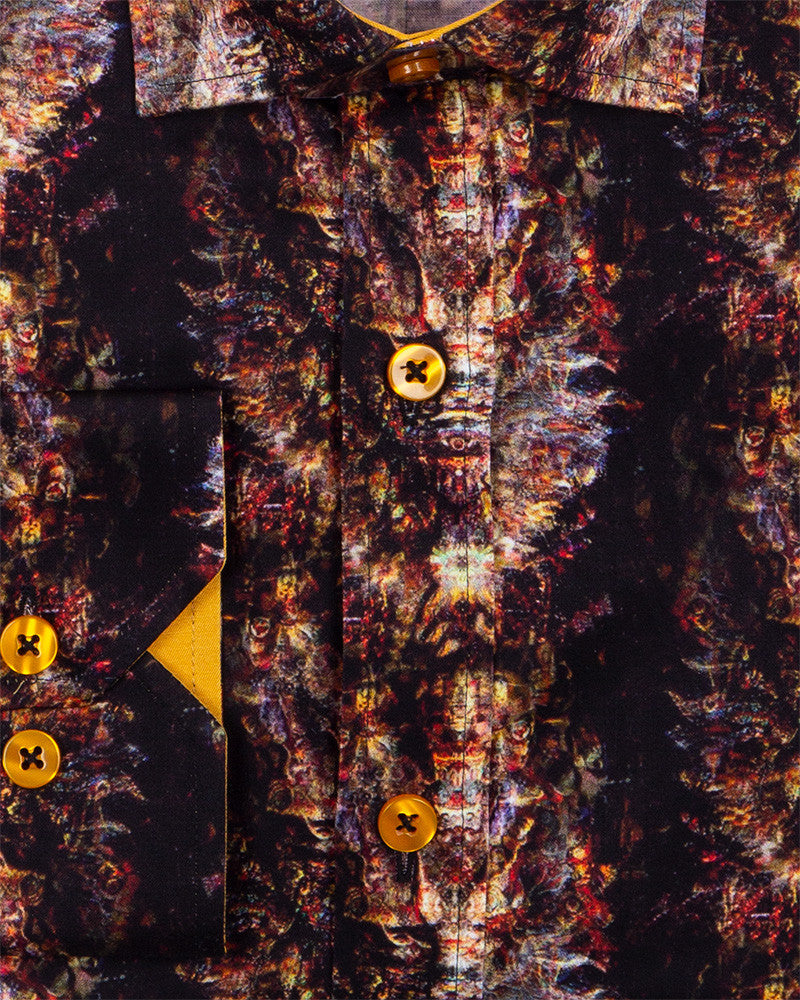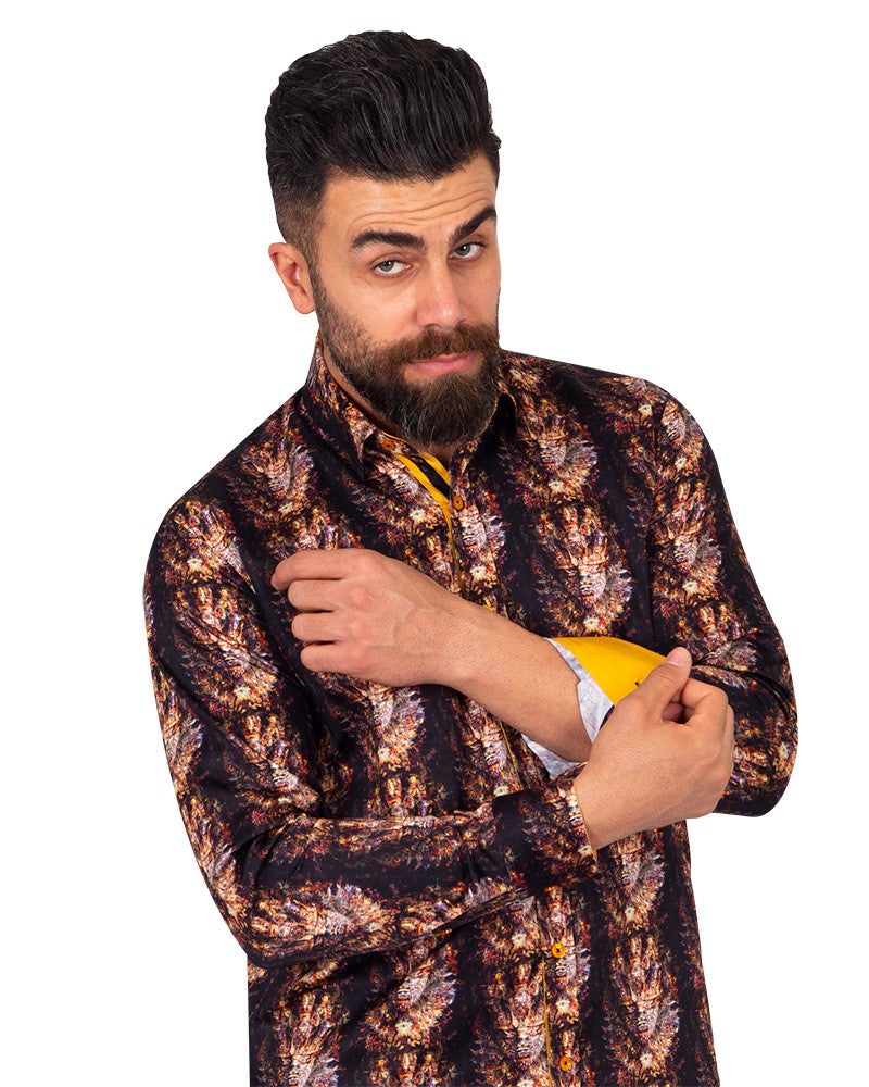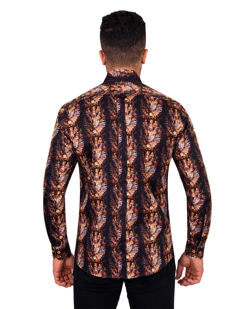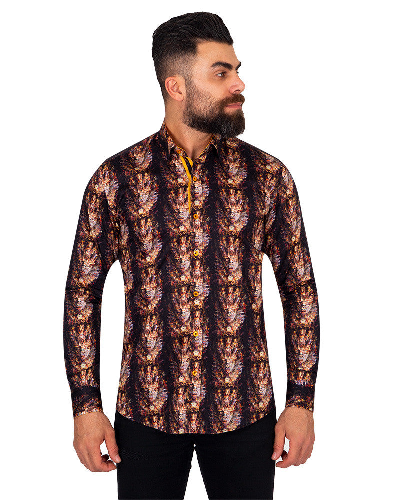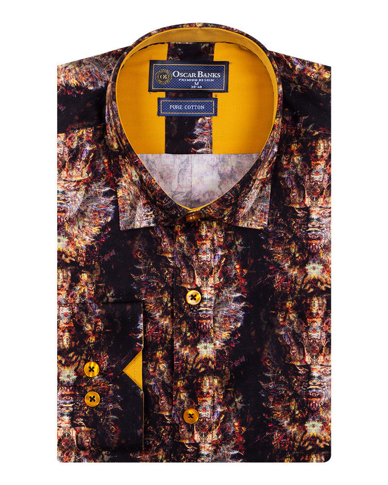 Discover the unique Egyptian Mask Print Pure Cotton Shirt, a perfect blend of style and comfort. This shirt features an eye-catching Egyptian mask design that adds a touch of culture to your wardrobe.