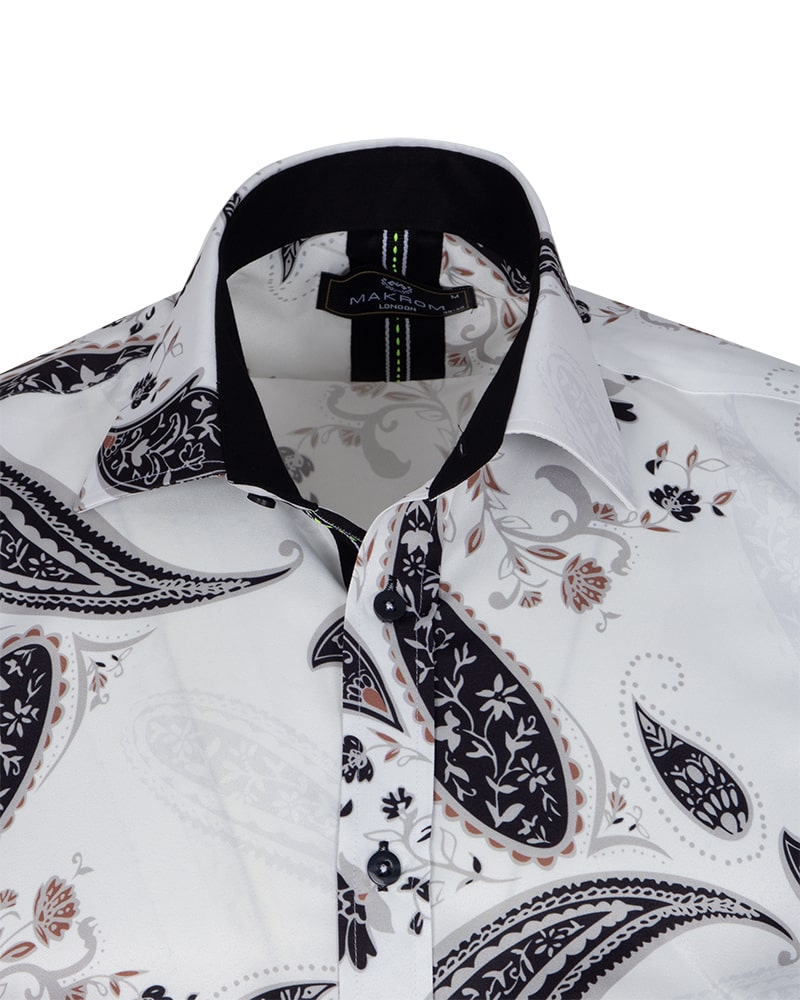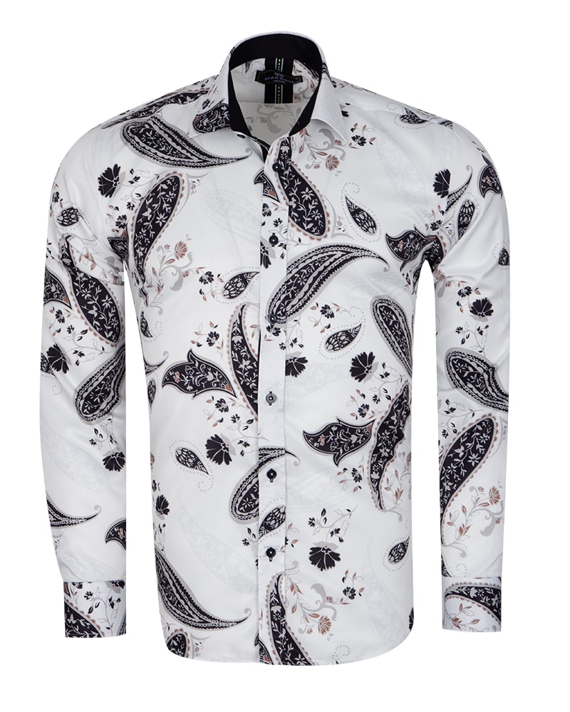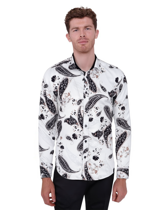 Introducing the Fashion Paisley Print Long Sleeve Shirt, a stylish addition to your wardrobe. This white shirt features a unique paisley print that adds a touch of sophistication to any outfit.