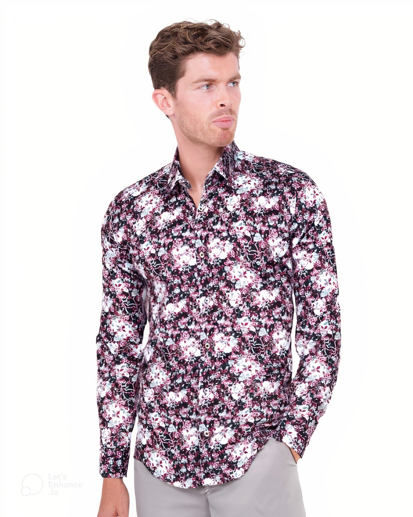 Introducing our Floral Printed Pure Cotton Shirt, a perfect blend of style and comfort. This long sleeve shirt features a striking black flower print that adds a touch of elegance to any outfit.
