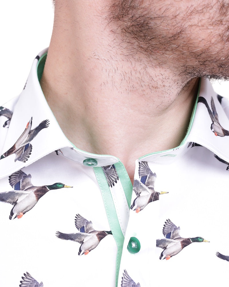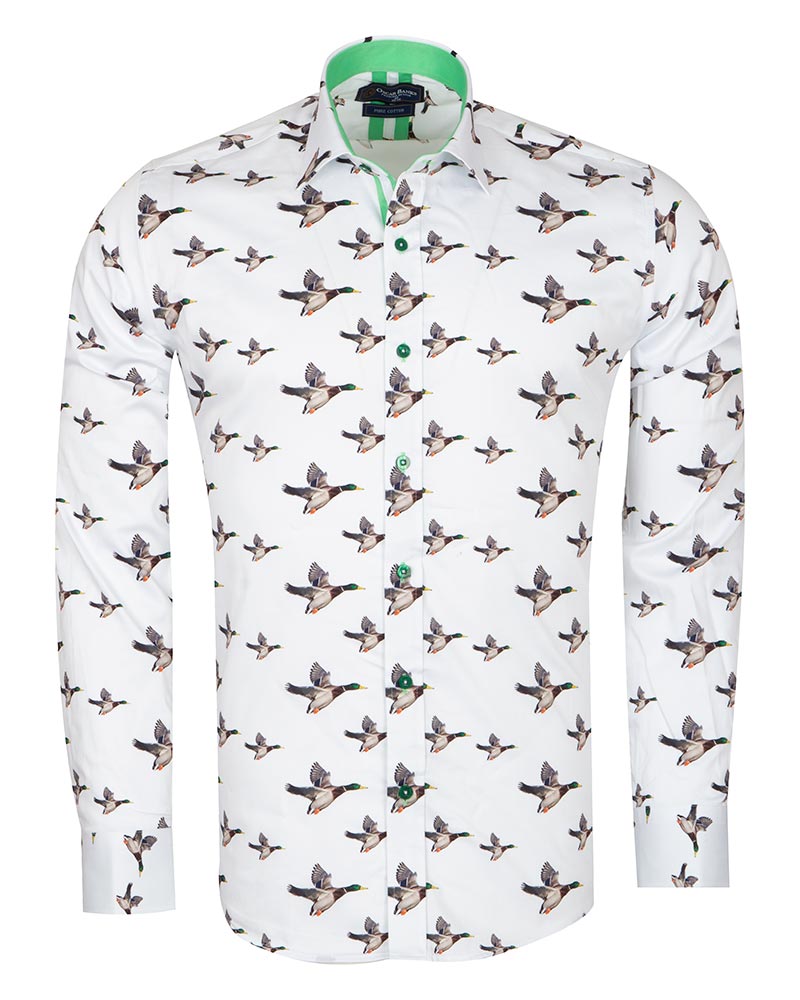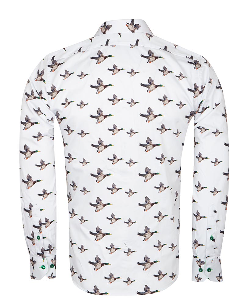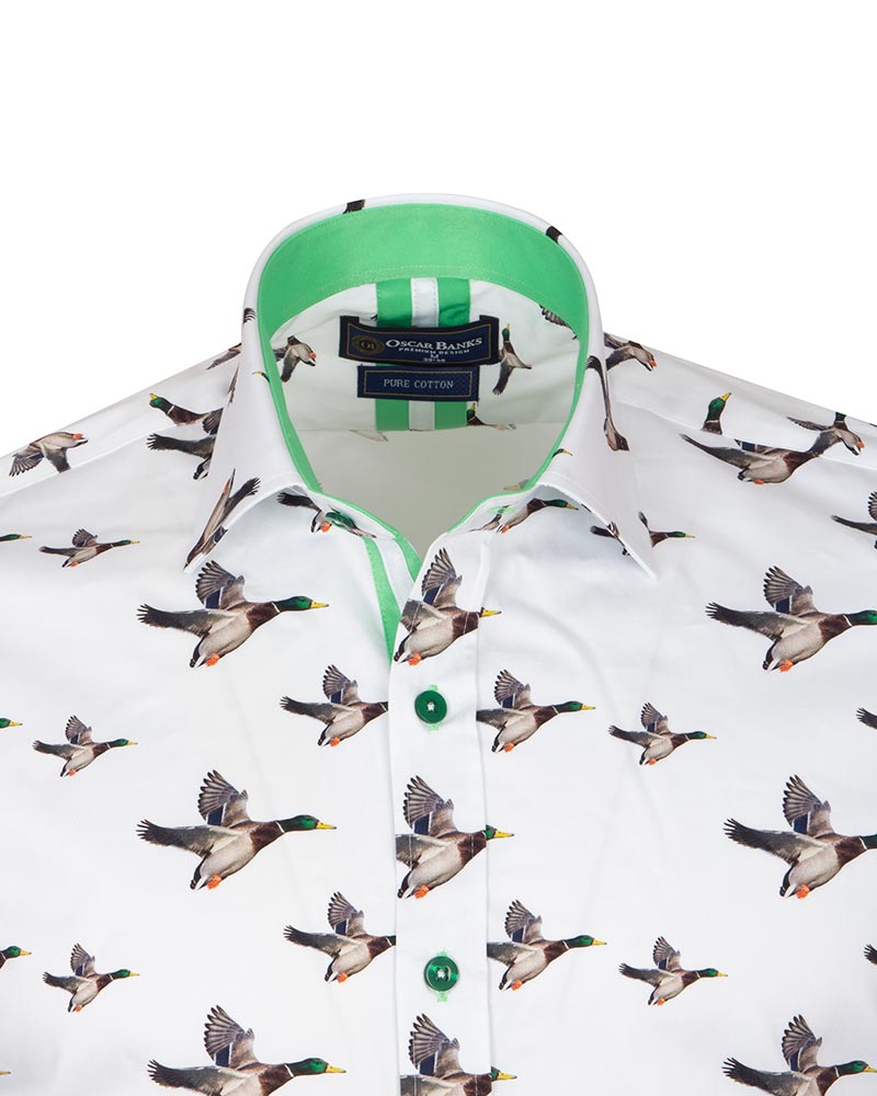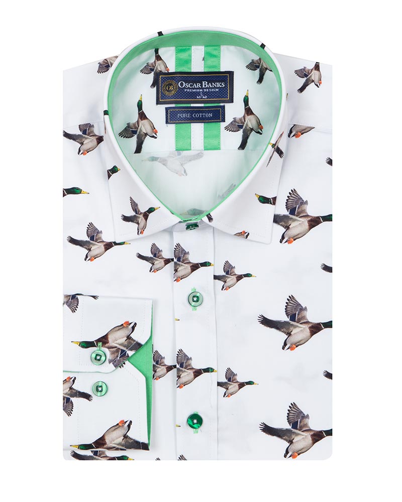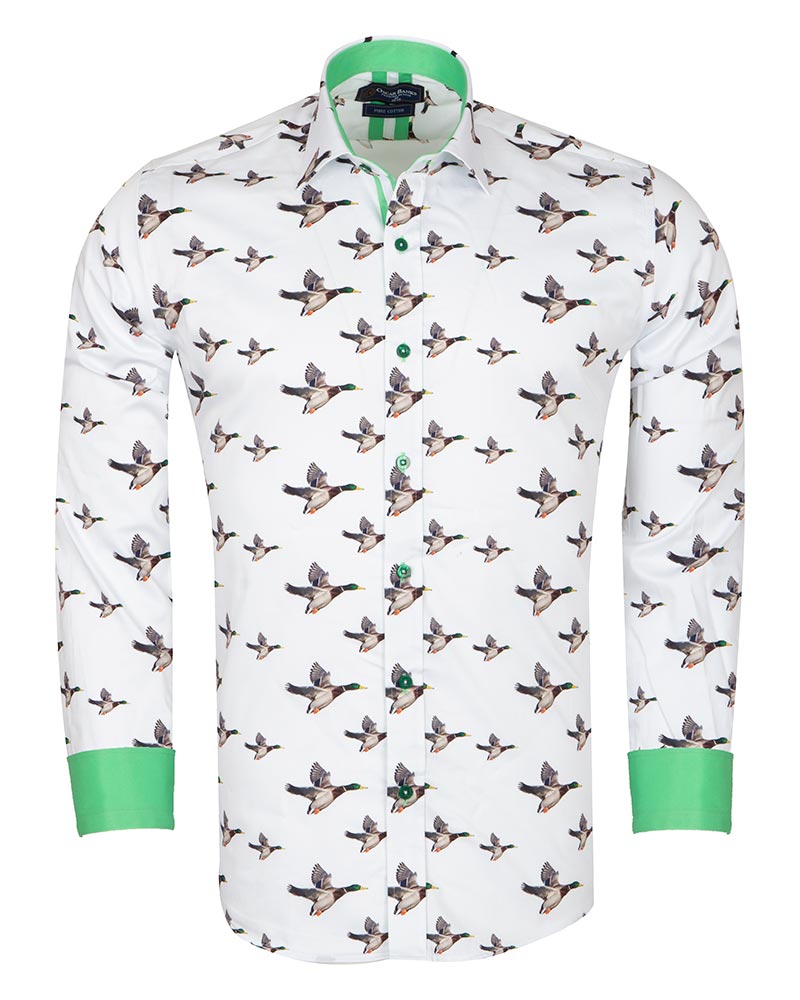 Discover the elegance of the Flying Mallard Print Shirt with Matching Handkerchief, a perfect blend of style and sophistication. Crafted from 100% satin cotton, this shirt offers a luxurious feel and exceptional comfort.