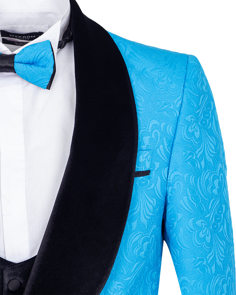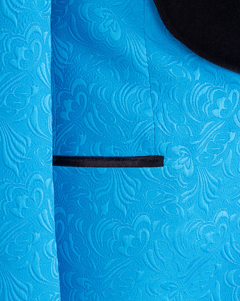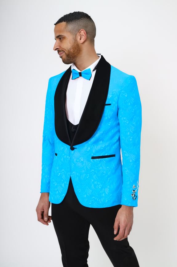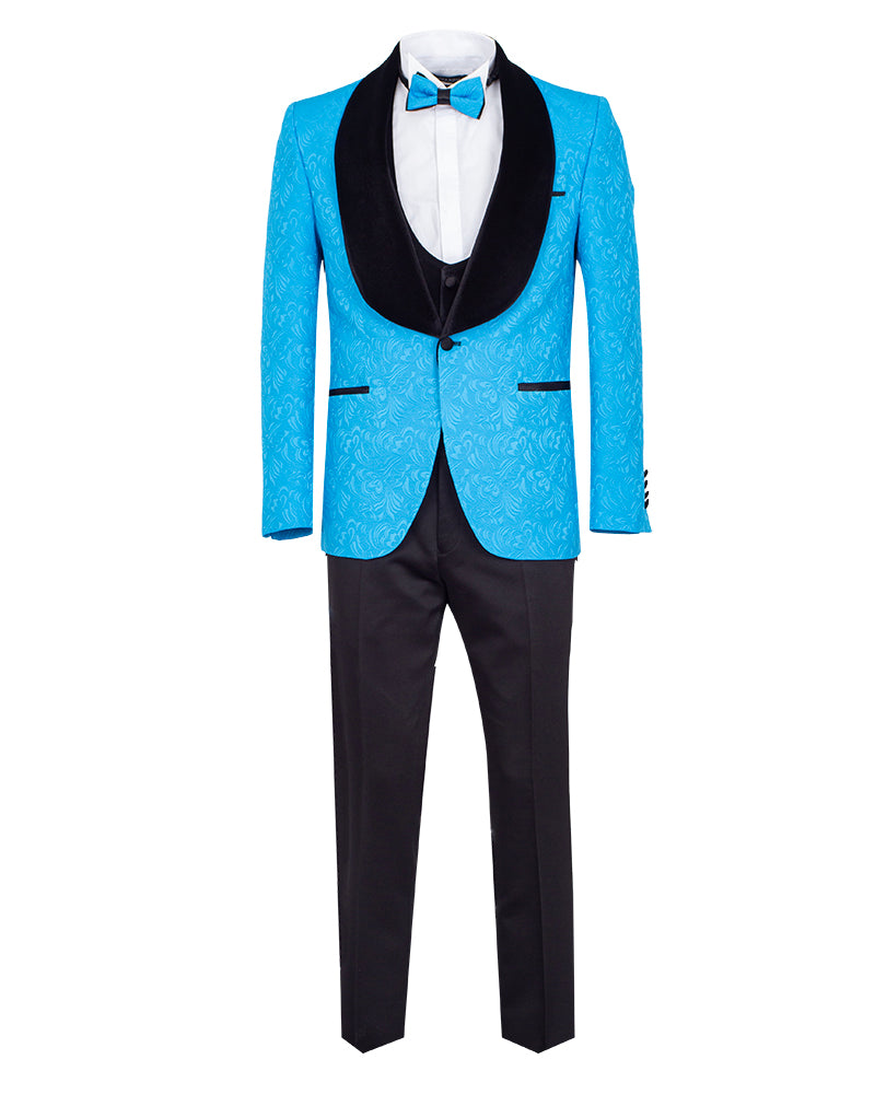 Four Piece Turquoise & Black Tuxedo Wedding Suit