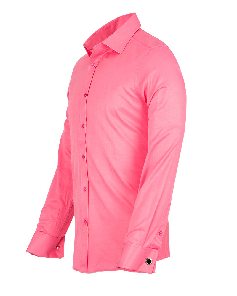 Introducing the Fuchsia Pink Plain Double Cuff Shirt, a vibrant addition to your wardrobe. This shirt features a tapered fit, ensuring a sleek silhouette. Please refer to the size chart for the perfect fit.