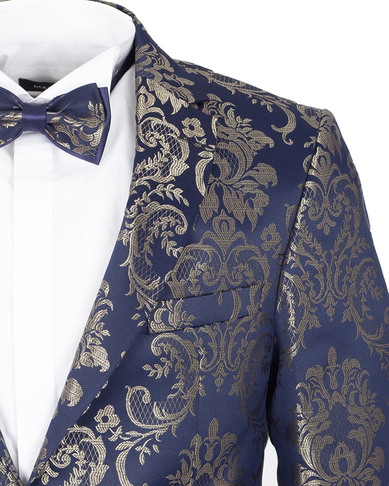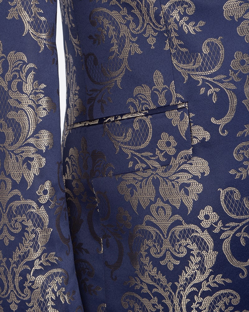 Introducing the Gold Paisley Printed Men's Blazer, a stunning addition to any wardrobe. This blazer features an eye-catching paisley print that exudes elegance and sophistication.