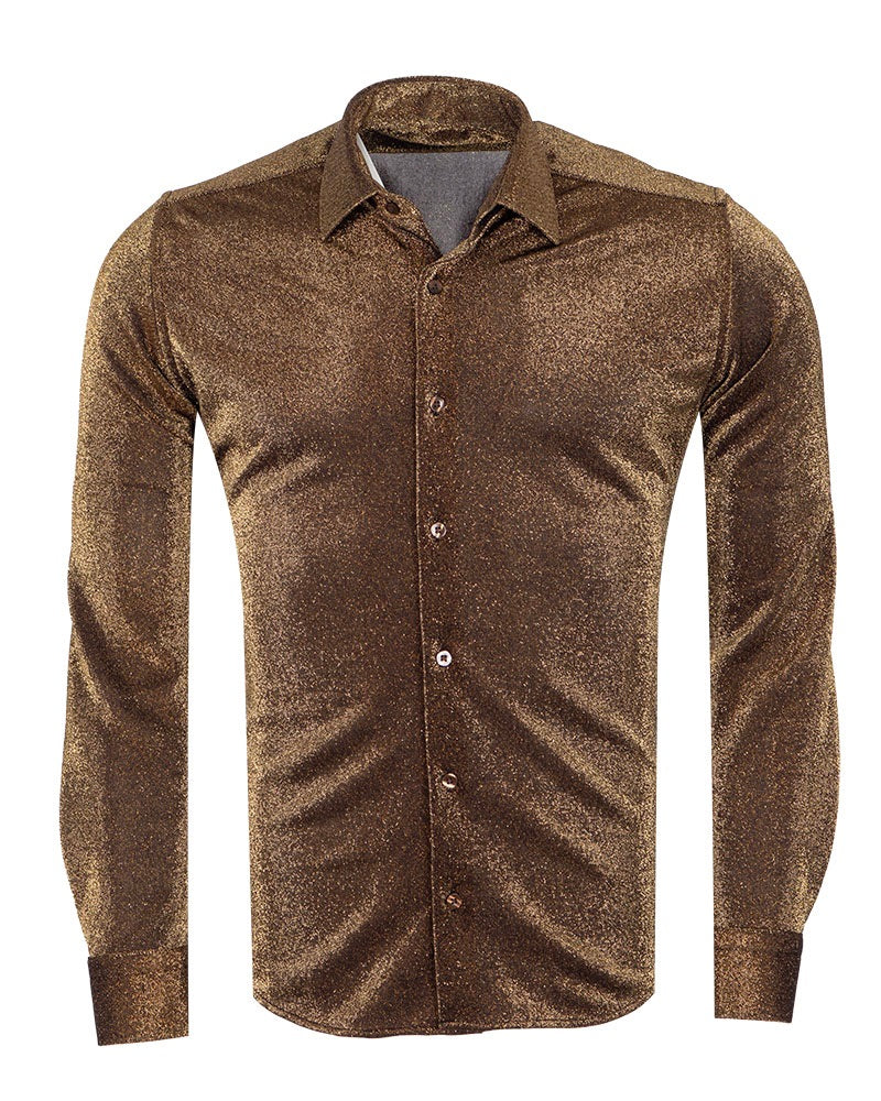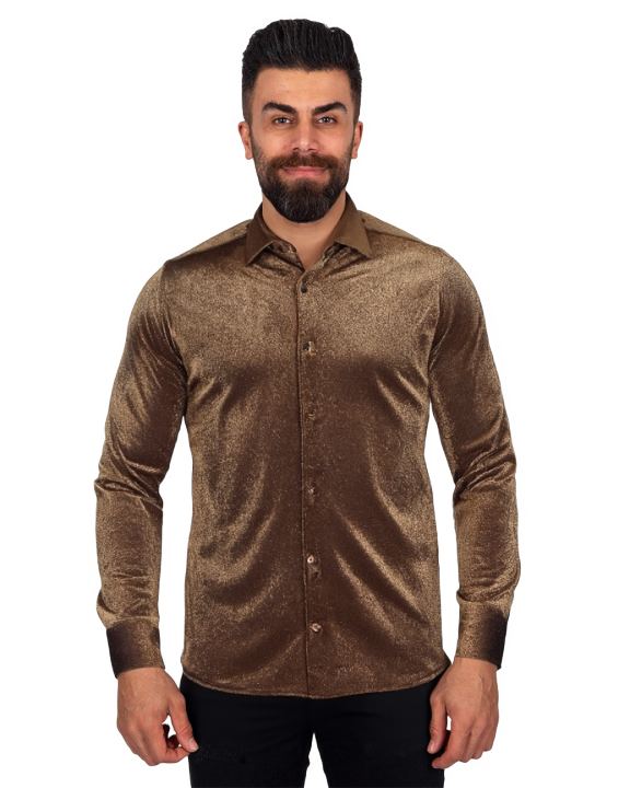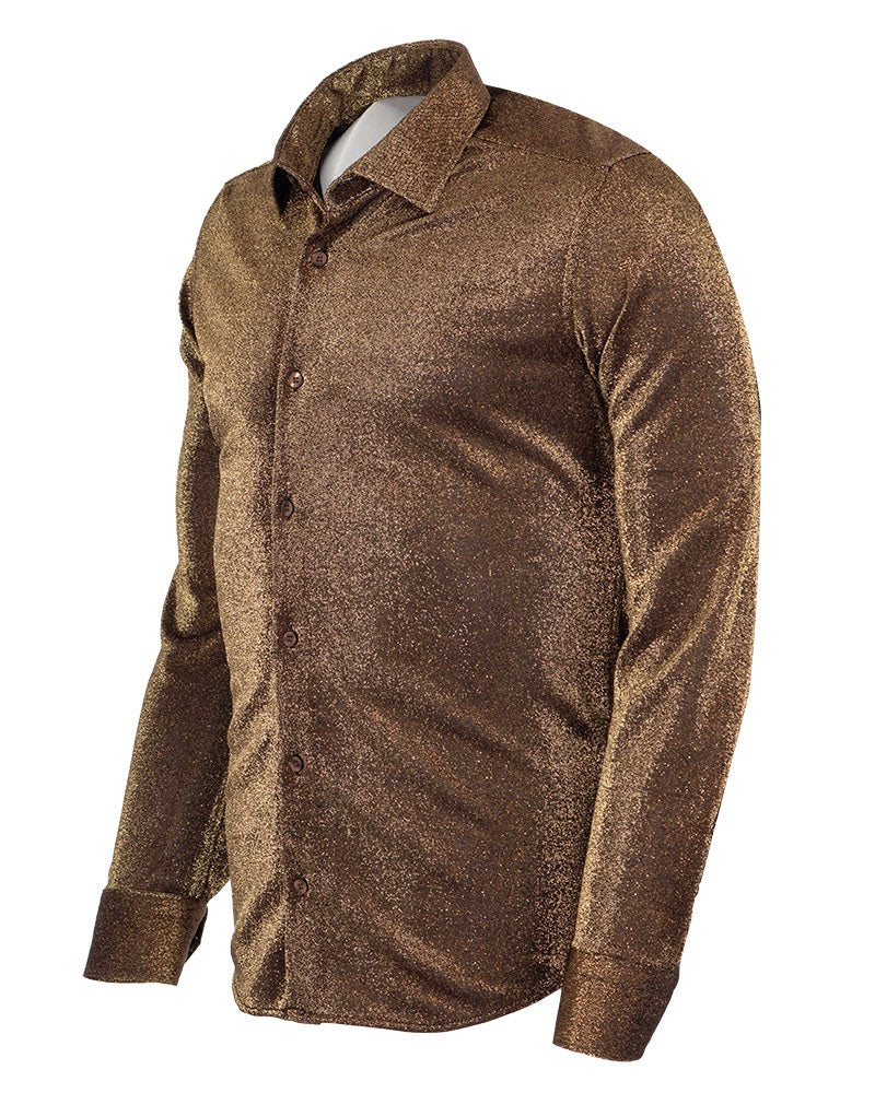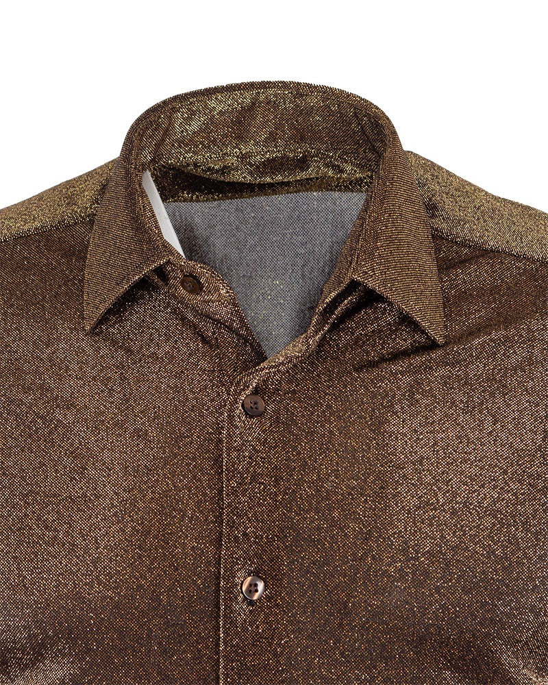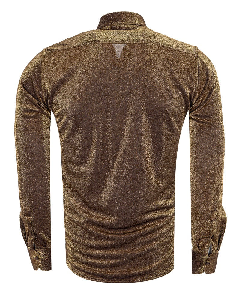 Introducing the Gold Sparkle Studded Glitter Shirt, a dazzling addition to your wardrobe that stands out in any crowd. This unique shirt combines elegance with a touch of glamour, making it perfect for both casual outings and special occasions.