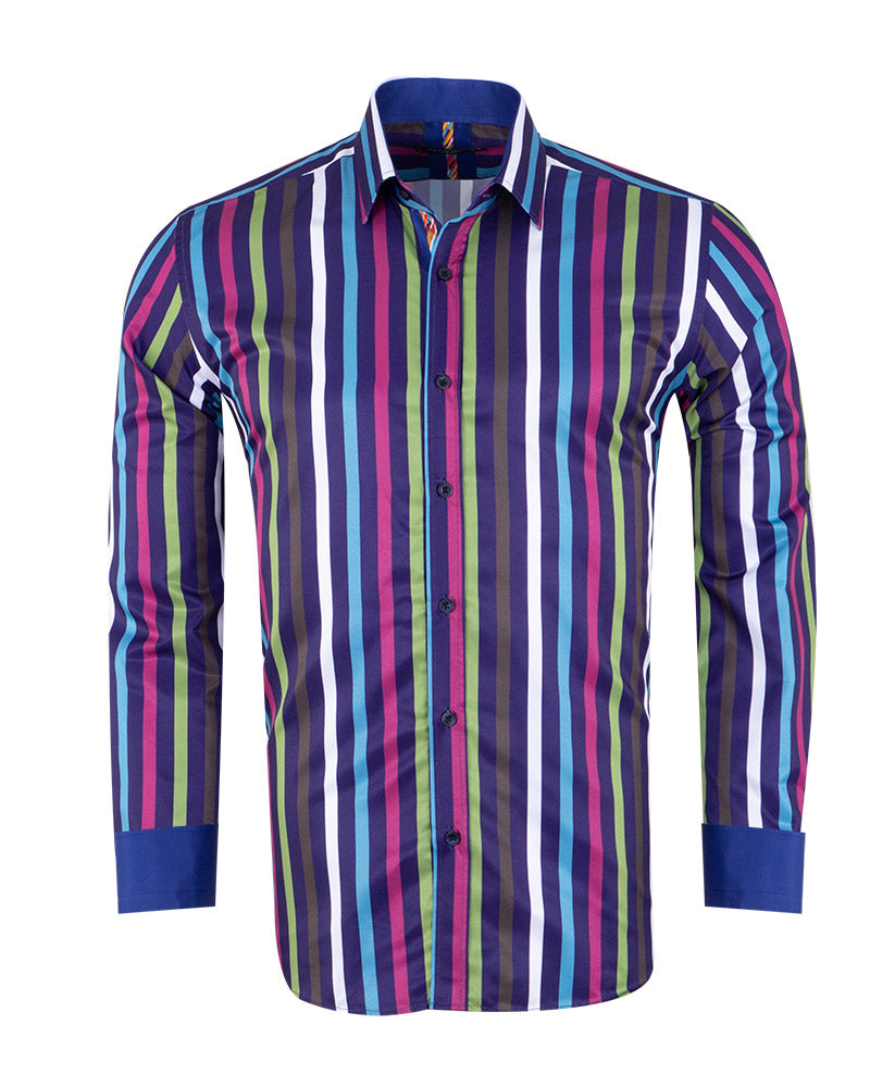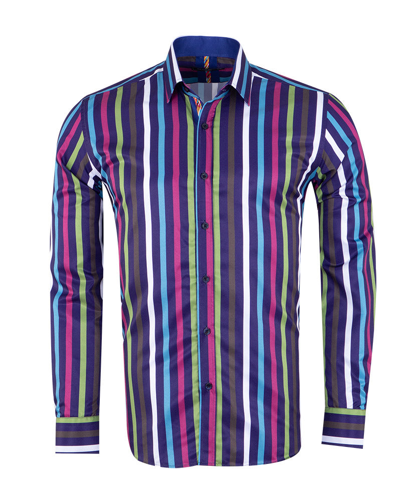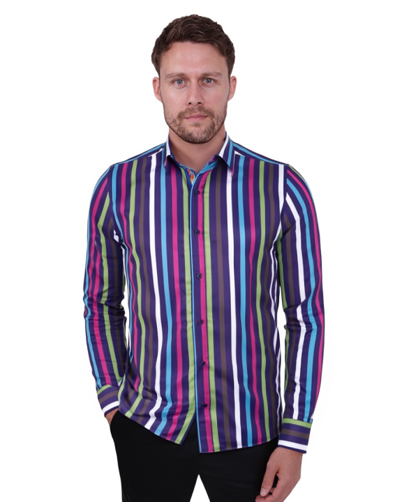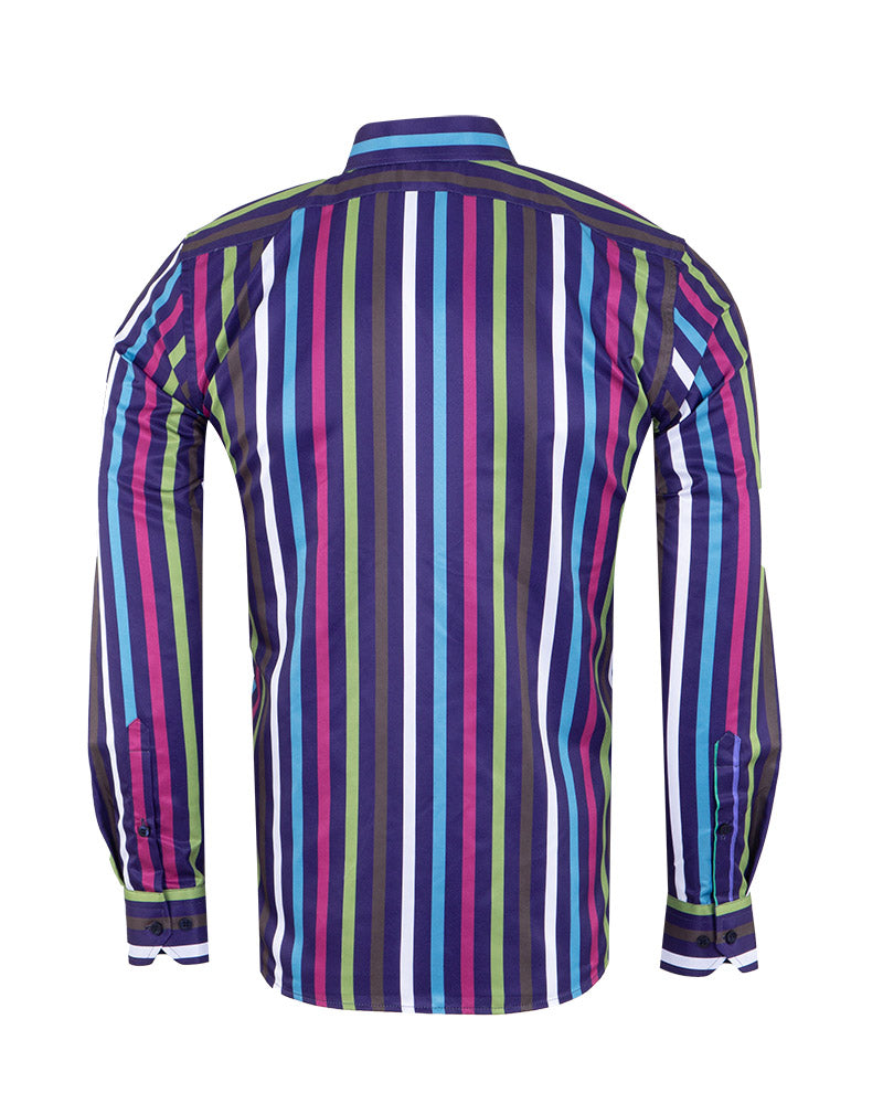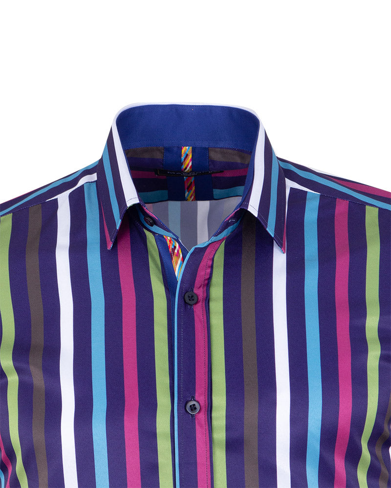 Introducing the Dark Green Colourful Bold Striped Men's Shirt, a perfect blend of style and comfort. This shirt features a striking bold striped print that adds a vibrant touch to your wardrobe.