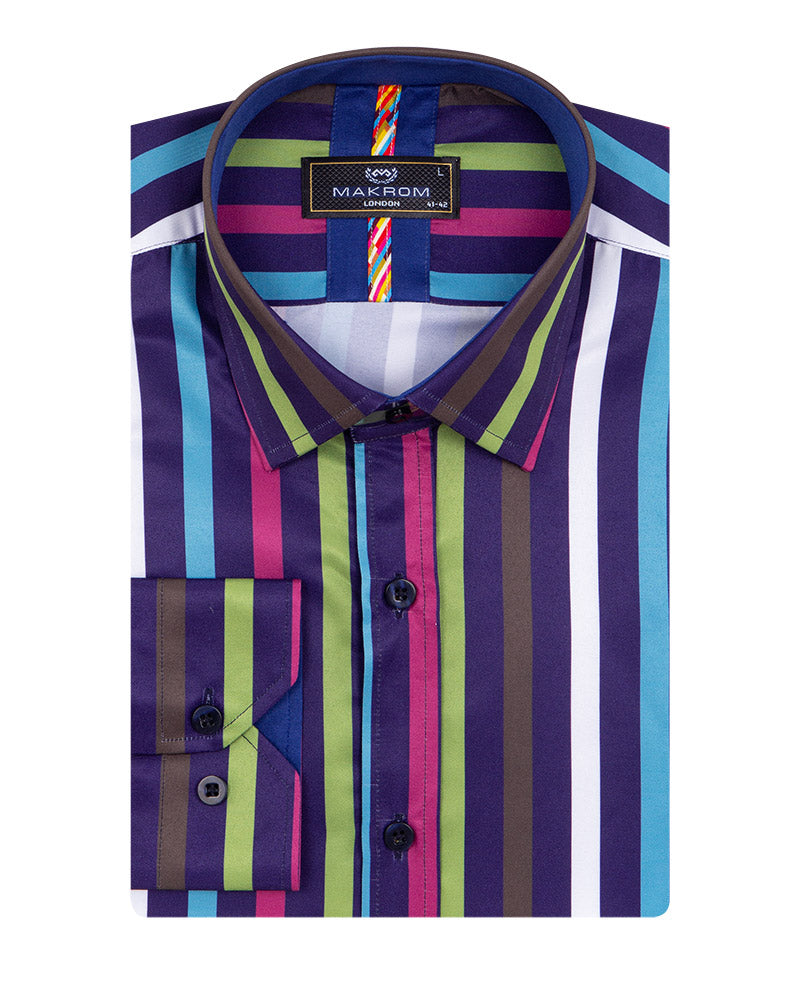 With single cuffs and two-button adjustable cuffs, this shirt offers a tailored fit that adapts to your style. Elevate your fashion game with this eye-catching piece from Makrom.