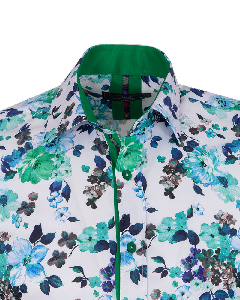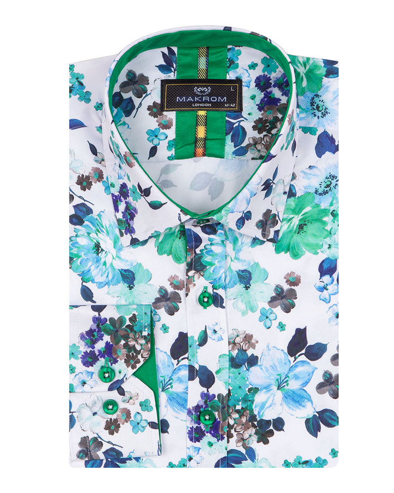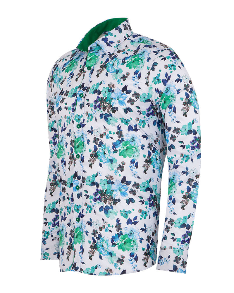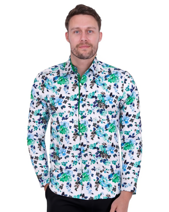 Discover the stylish Green Flower Print Shirt, perfect for adding a touch of nature to your wardrobe. This shirt features a vibrant floral design that stands out while maintaining a sophisticated look.