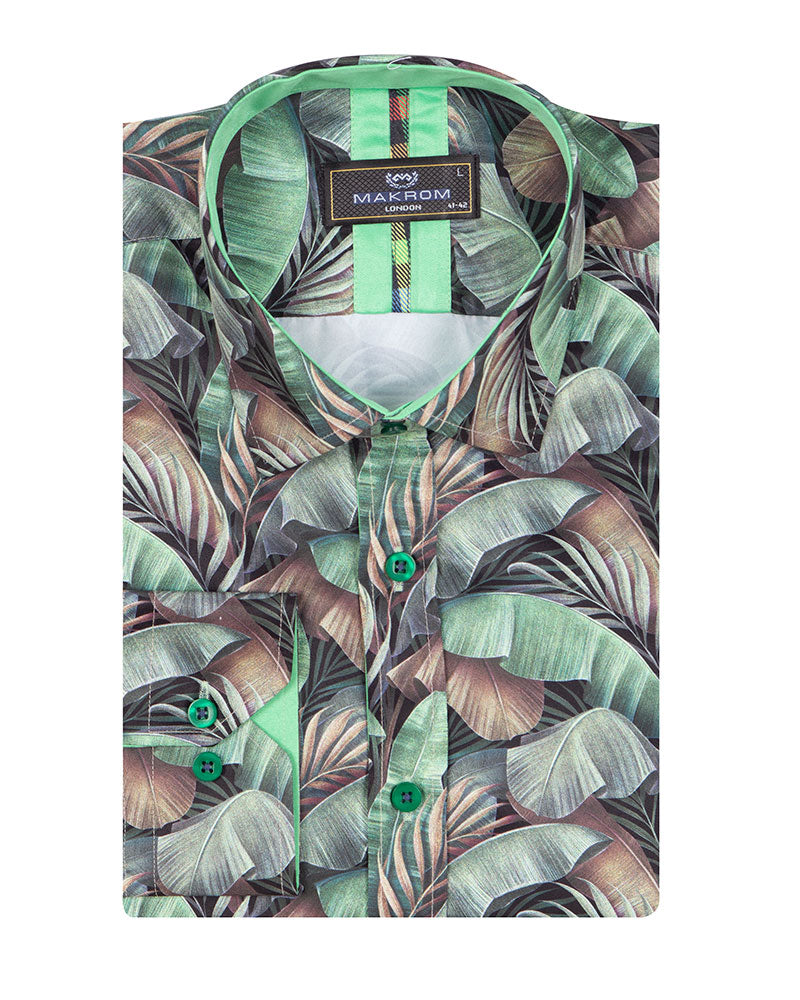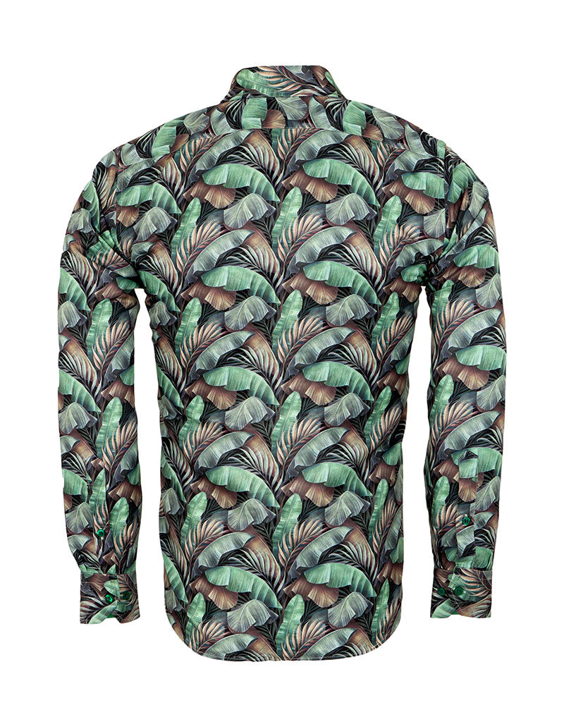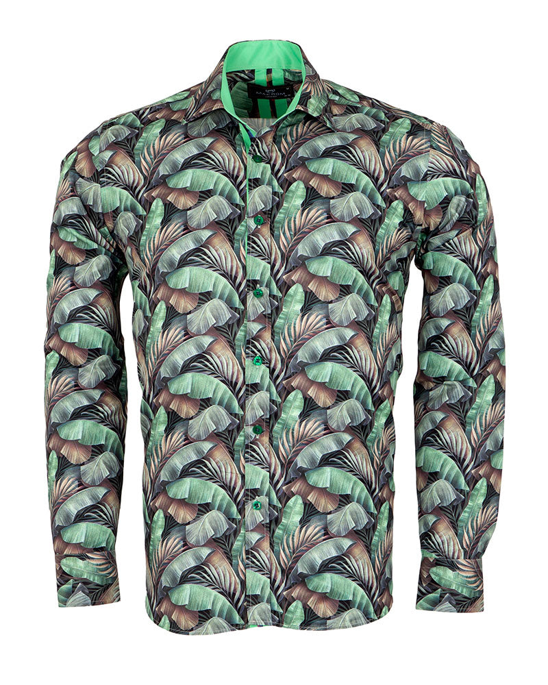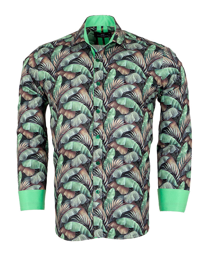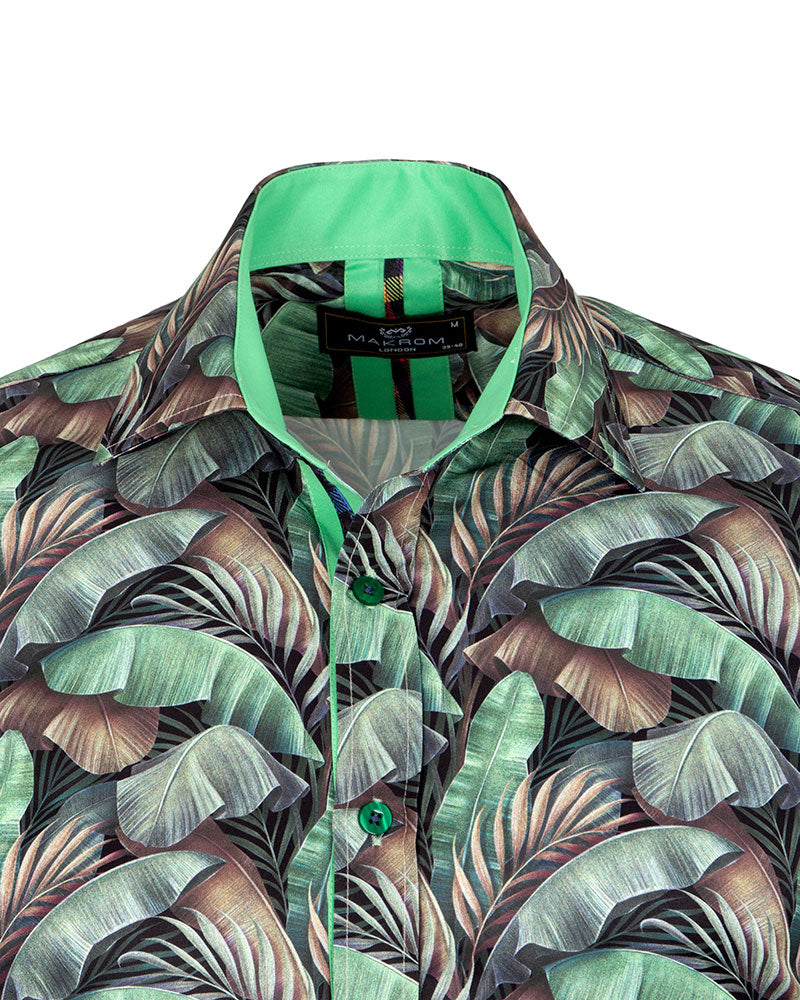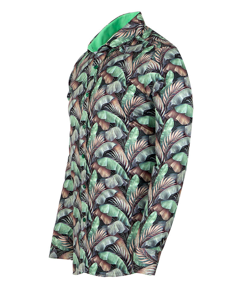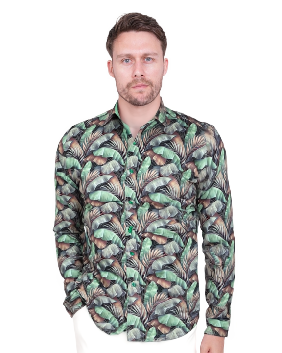 Discover the vibrant Green Tropical Leaf Print Shirt, perfect for adding a touch of nature to your wardrobe. This stylish shirt features a unique tropical leaf design that stands out in any setting.