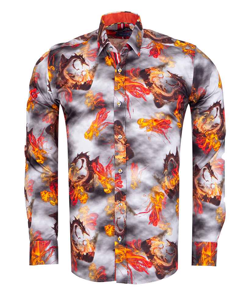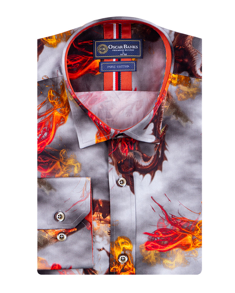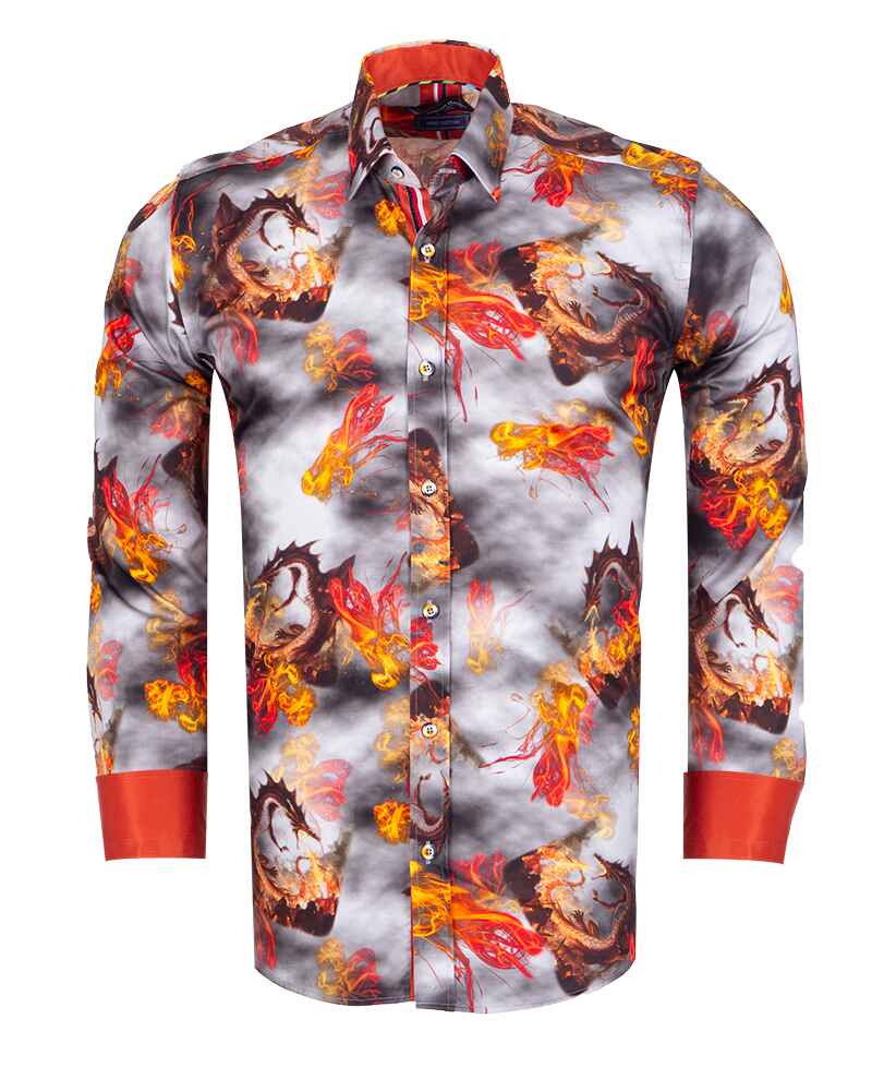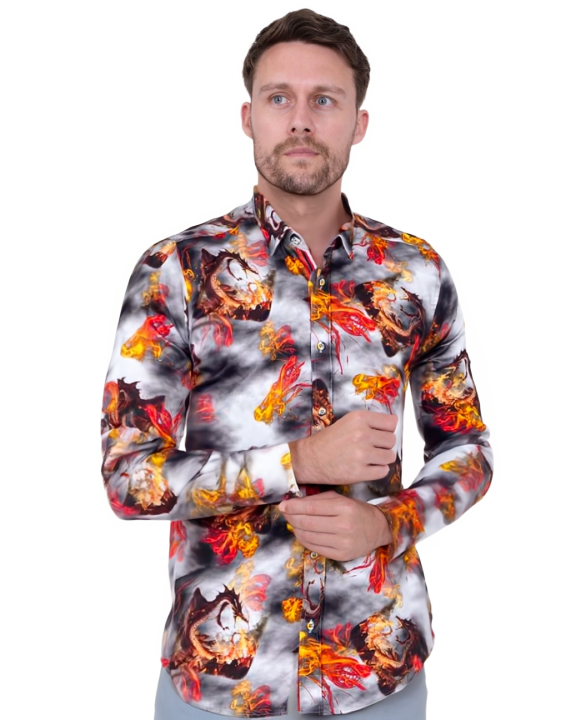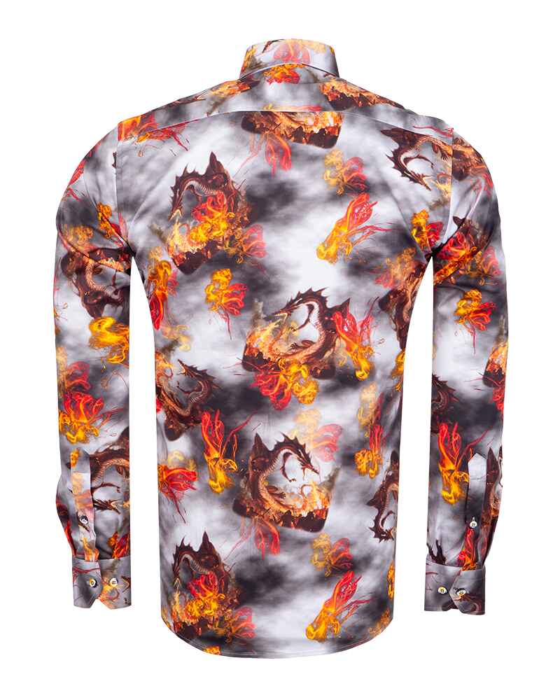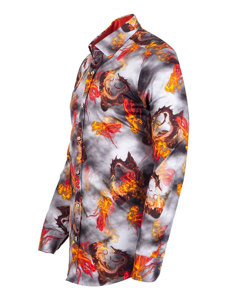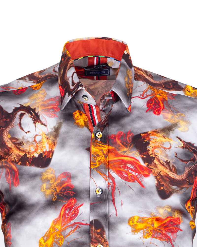 Introducing the Red Dragon Print Men's Shirt, a striking addition to any wardrobe. Crafted from 100% satin cotton, this shirt offers both comfort and style.