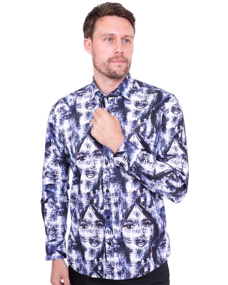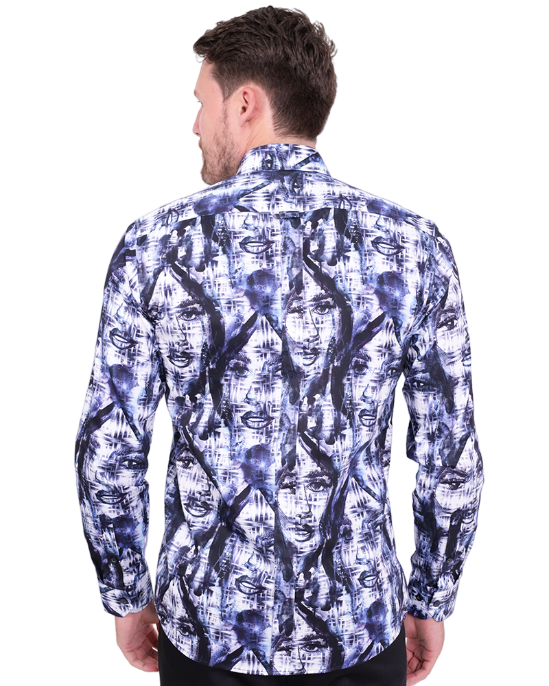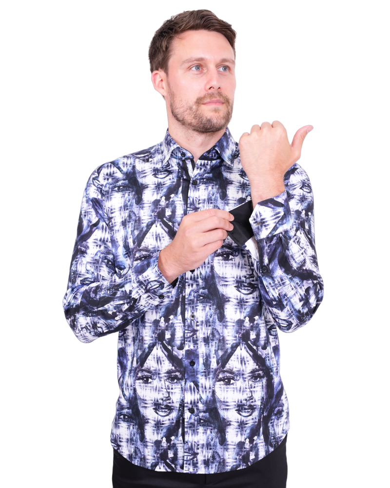 The unique hidden face print adds a modern twist, while the contrasting collar and cuff provide a sophisticated touch. Designed with single cuffs and two-button adjustable cuffs, it ensures a perfect fit for every occasion.