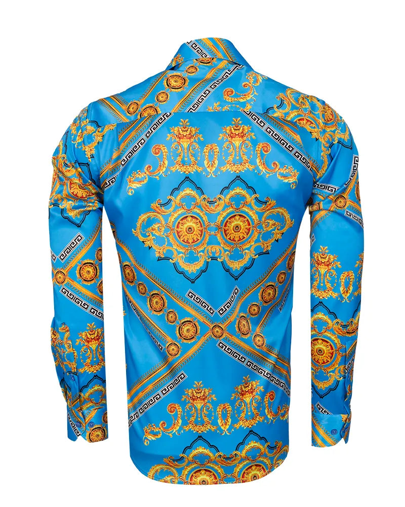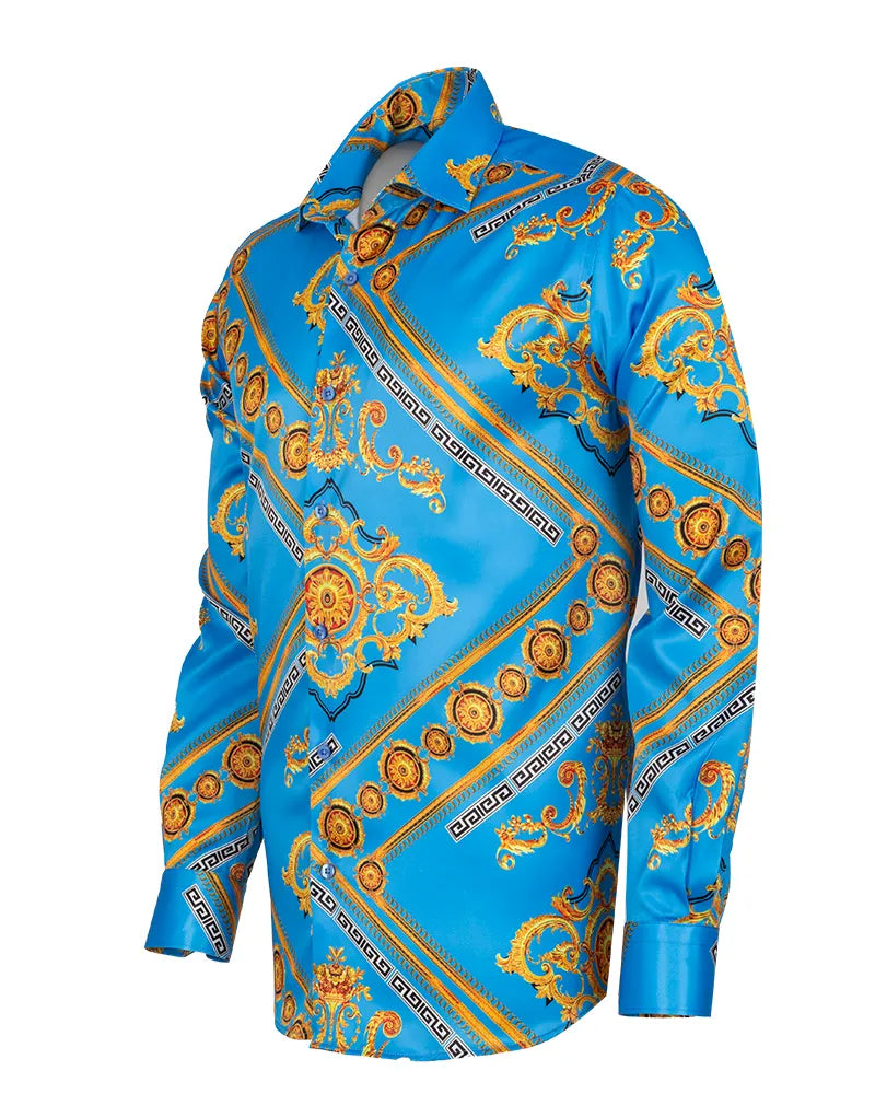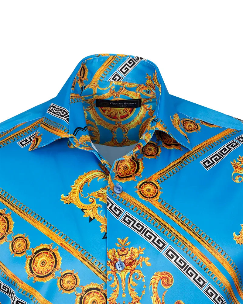 Light Blue Baroque Chain & Paisley Print Men`s Shirt