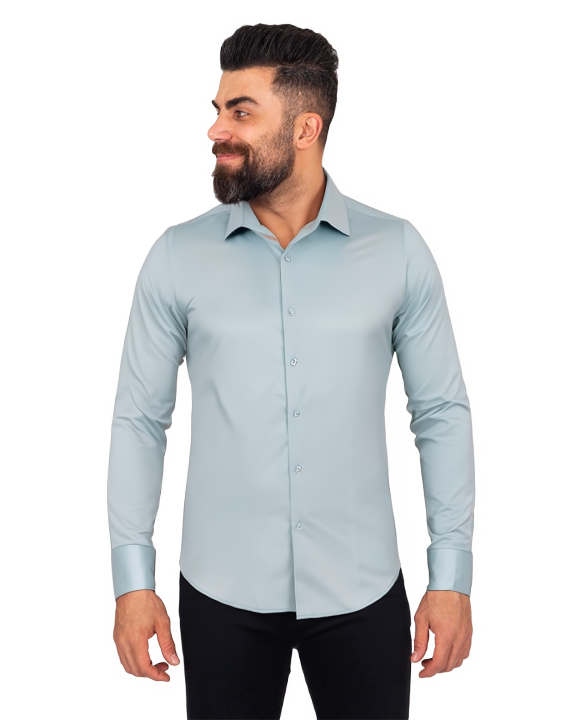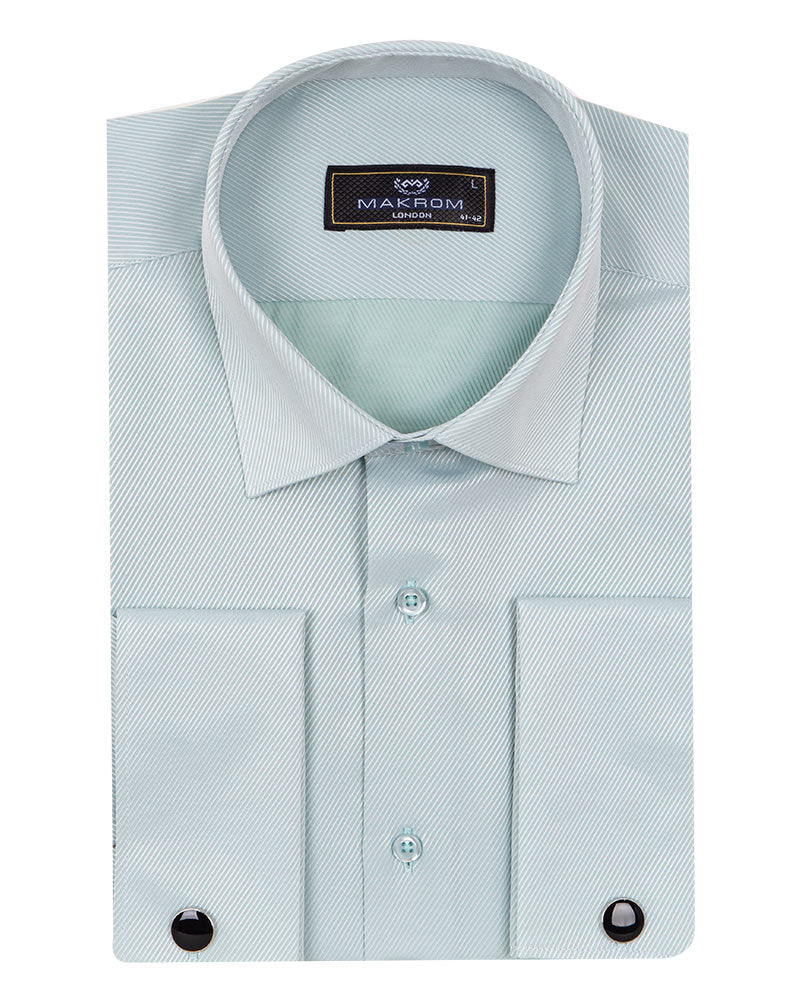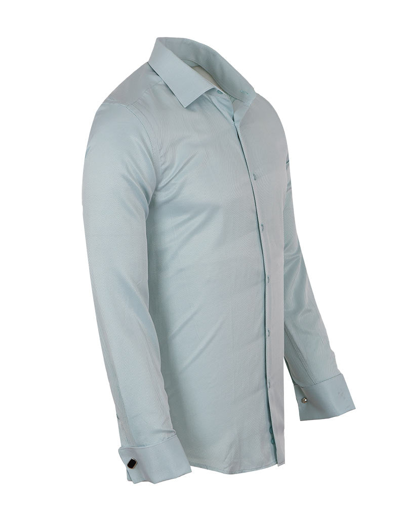 Introducing the Light Green Casual Twill Double Cuff Long Sleeve Shirt, a perfect blend of style and comfort. This shirt features a tapered fit, ensuring a sleek silhouette. Please refer to the size chart for the best fit.