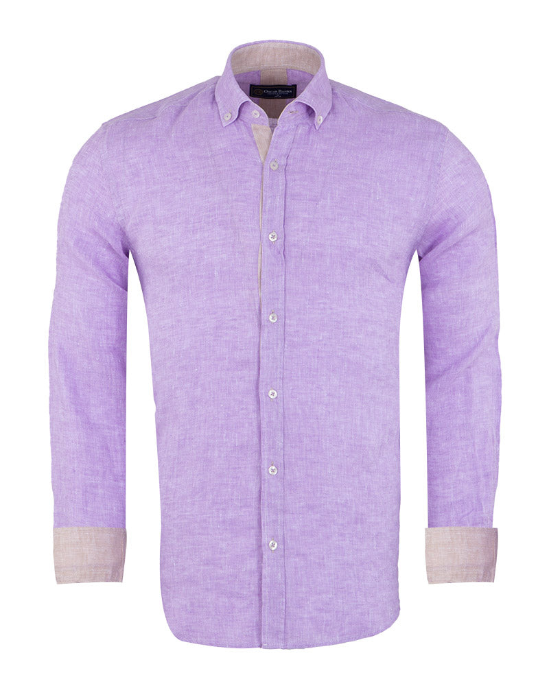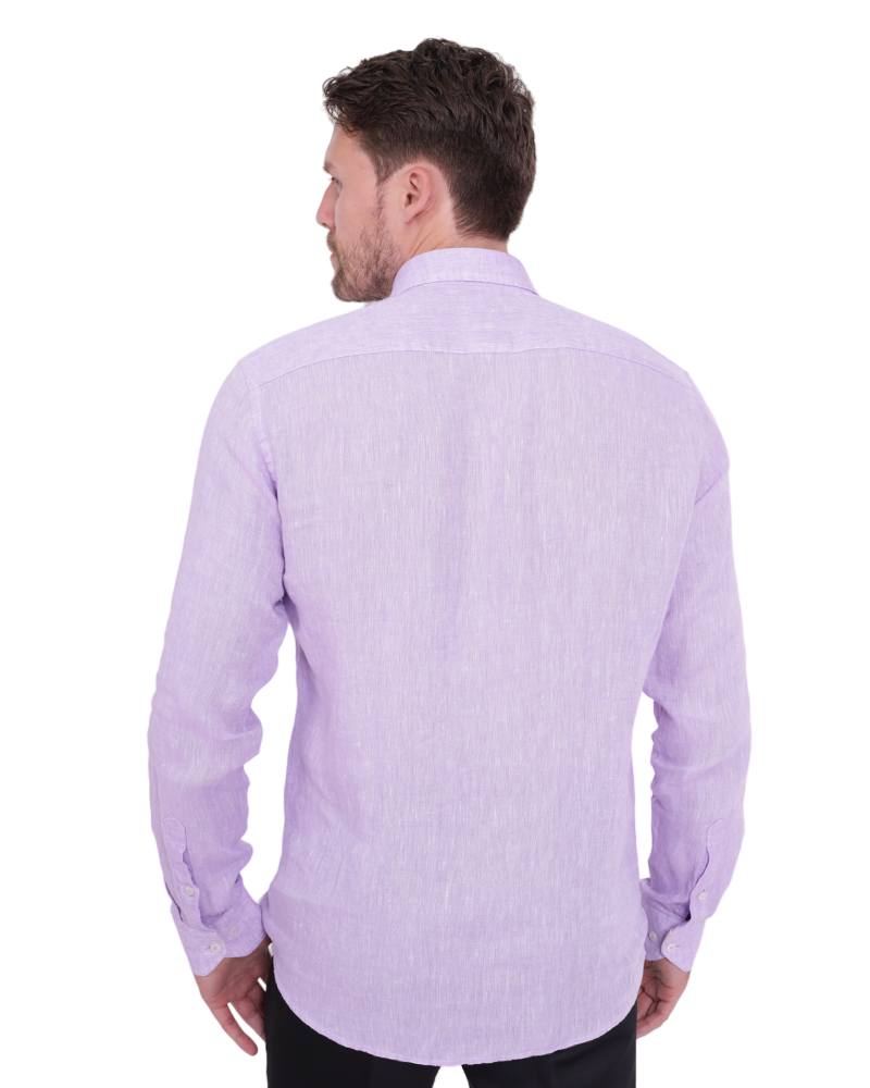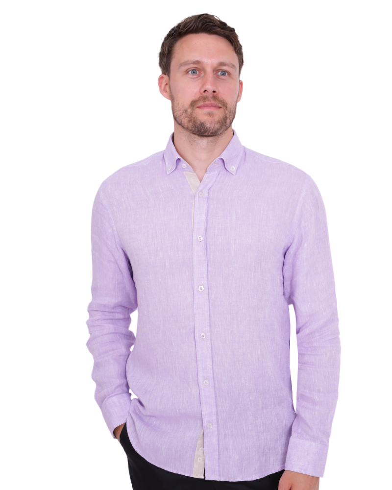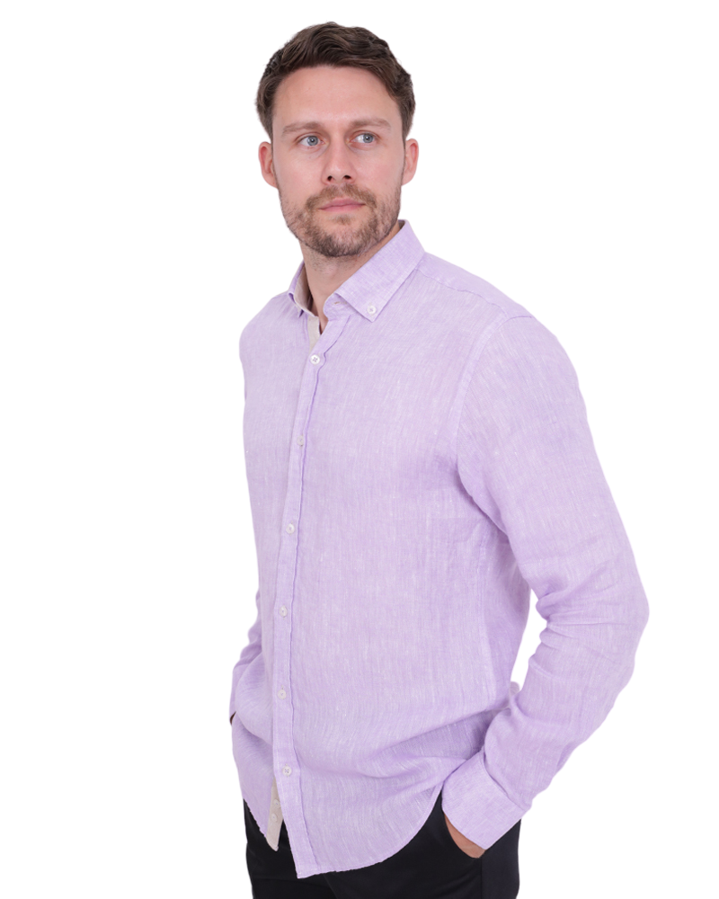 Introducing the Lilac Plain Linen Long Sleeve Shirt, a perfect blend of style and comfort. Crafted from 100% linen, this shirt offers breathability and a soft touch, making it ideal for any occasion.