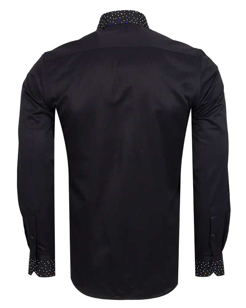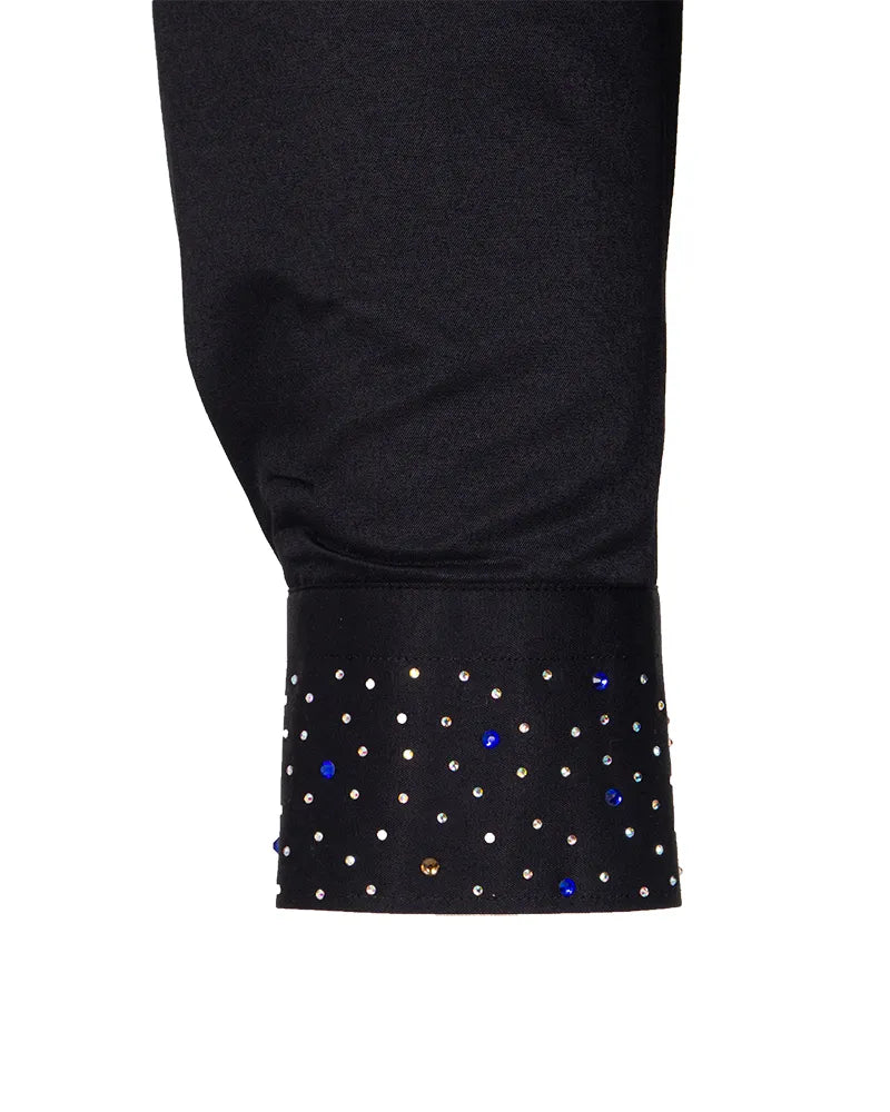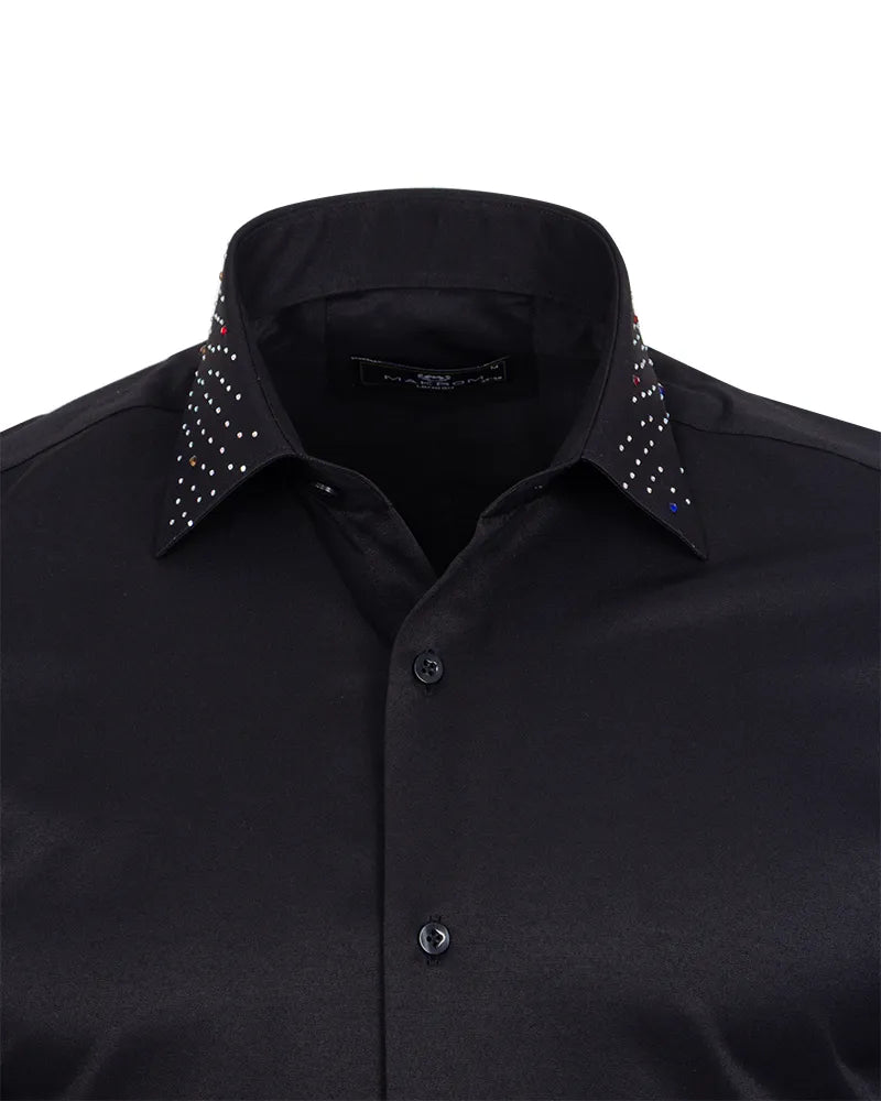 Men’s Black Dress Shirt with Crystal-Studded Collar and Cuffs