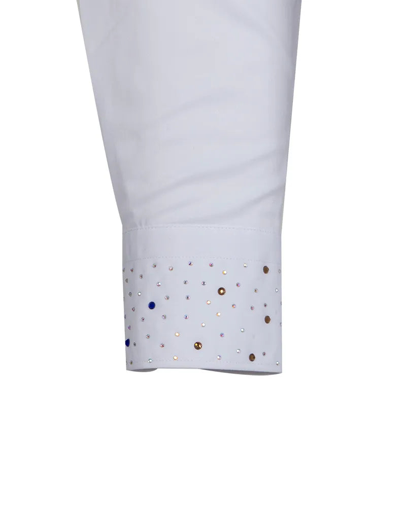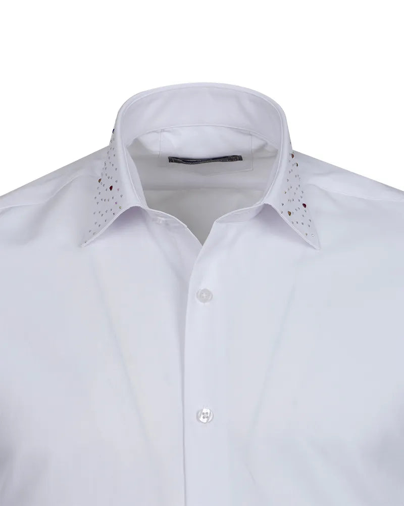 Men’s White Dress Shirt with Crystal-Studded Collar and Cuffs