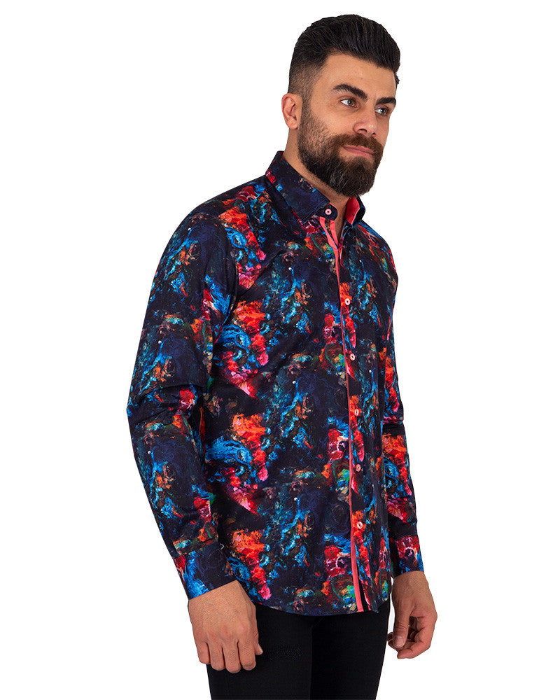 Discover the elegance of the Midnight Sky Print Pure Cotton Shirt, a perfect blend of style and comfort. This shirt features a stunning midnight sky print that adds a unique touch to your wardrobe.