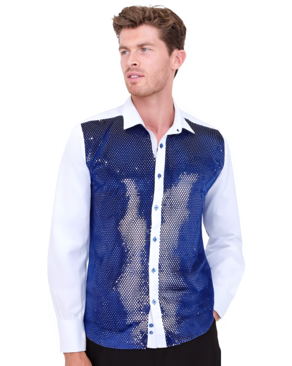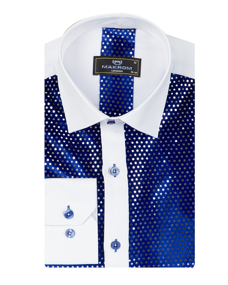 Navy Sequin Fashion Shirt with Plain Collar Tip Design