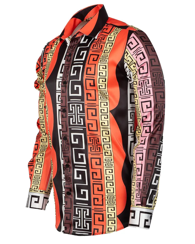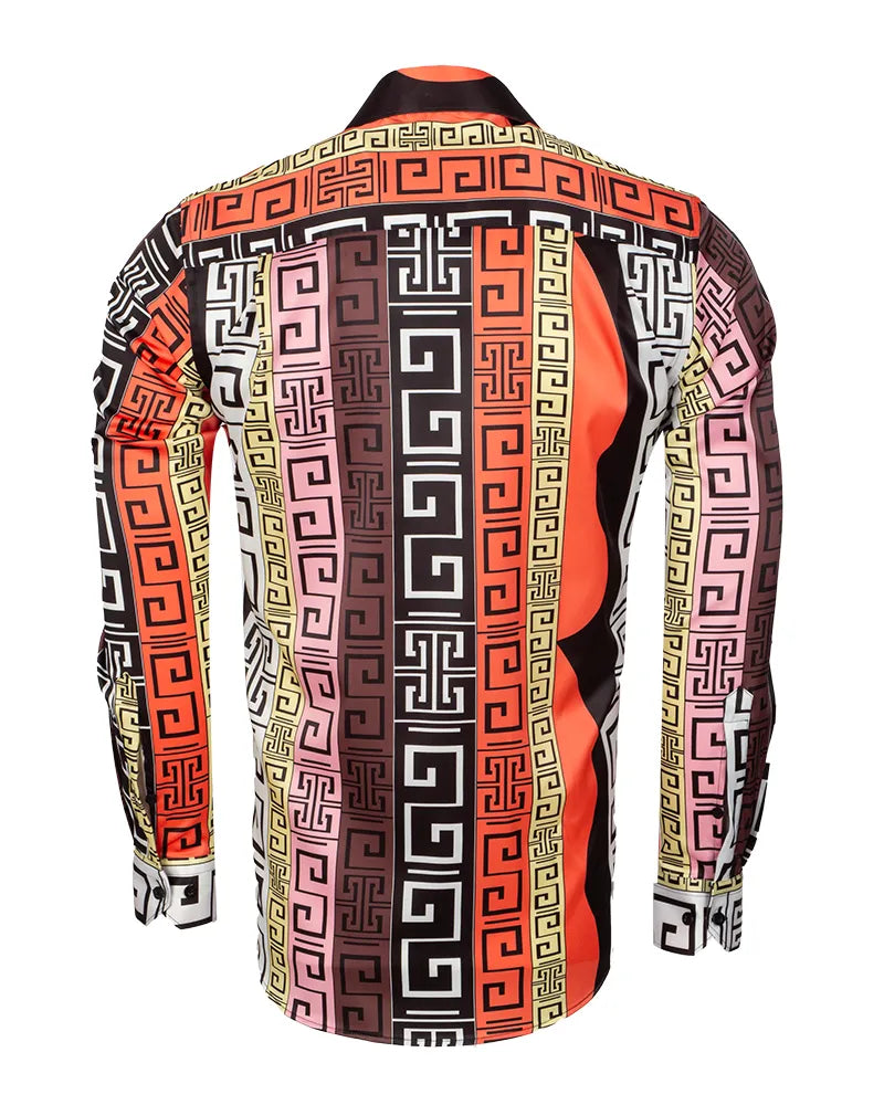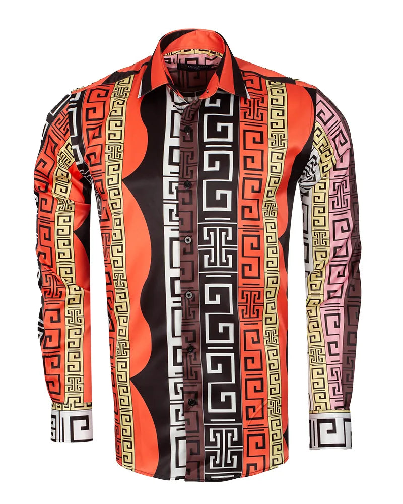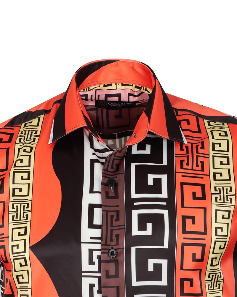 Introducing the Oscar Banks Premium Geometric Pattern Dress Shirt, a stylish addition to your wardrobe. This shirt features a unique maze print that adds a touch of sophistication to any outfit.