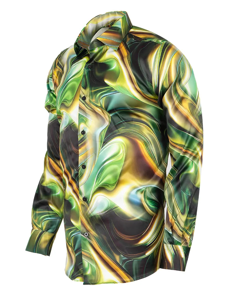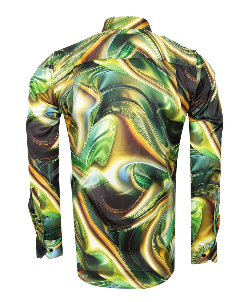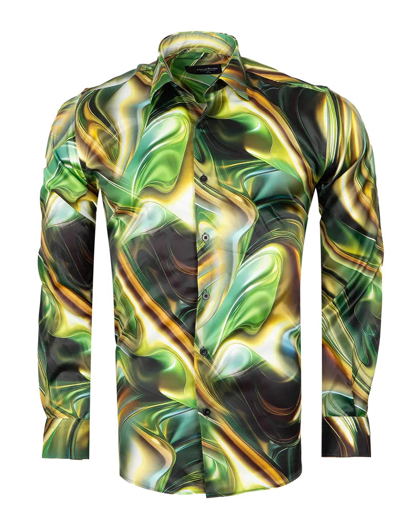 Oscar Banks Premium Satin Green Marble Print Shirt