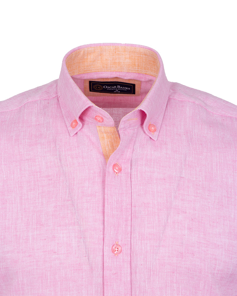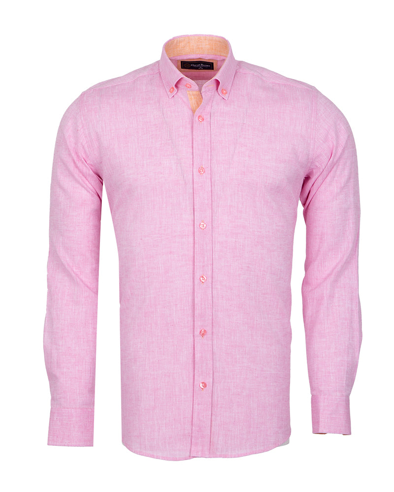 Pink Linen Long Sleeve Shirt with Matching Handkechief