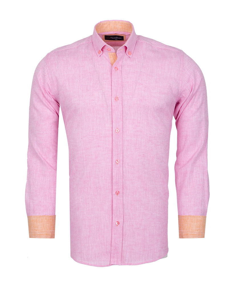 The fine cut and stitching highlight the quality craftsmanship, while the unique orange cuff and collar detail adds a pop of colour. Featuring a button-down collar, this shirt is versatile enough for both casual and formal occasions.