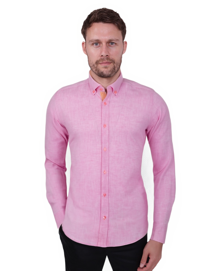 Introducing the Pink Linen Long Sleeve Shirt with Matching Handkerchief, a perfect blend of style and comfort. Crafted from 100% linen, this shirt ensures breathability and a lightweight feel, making it ideal for warm weather.
