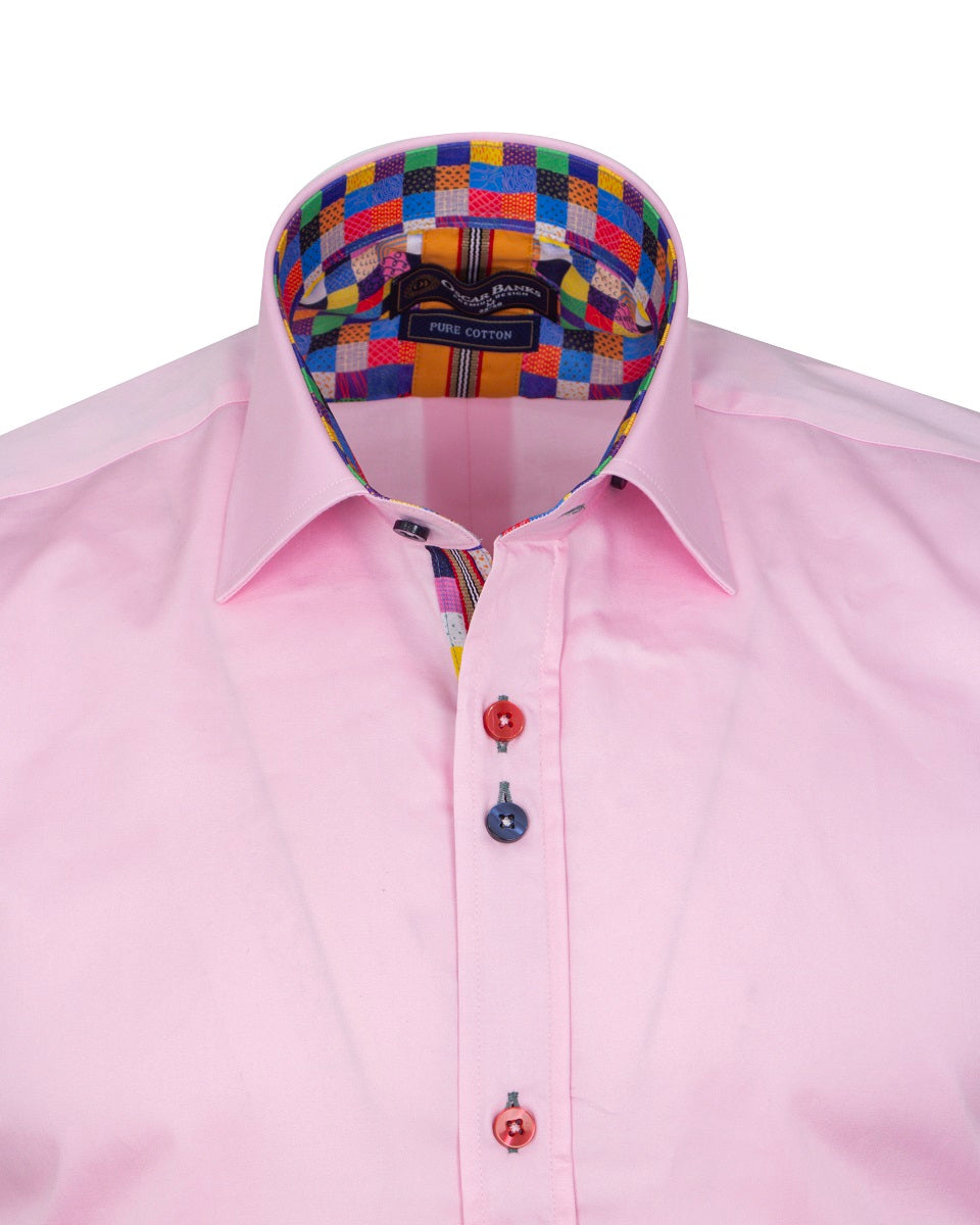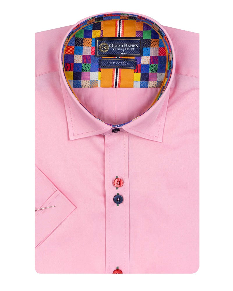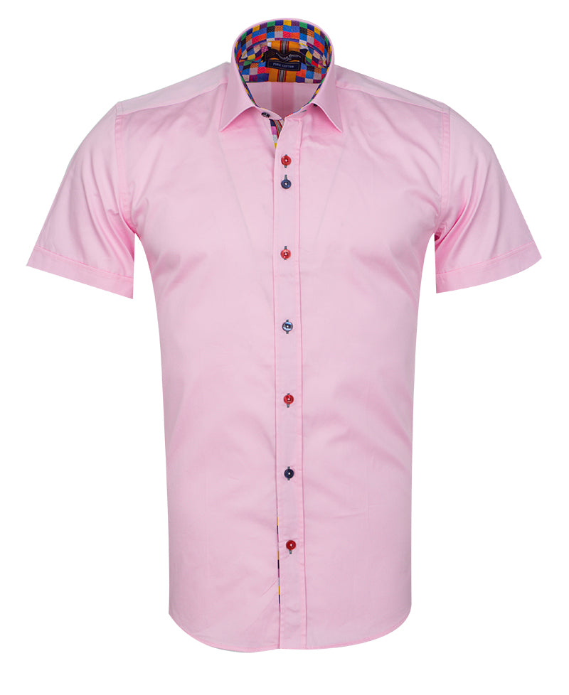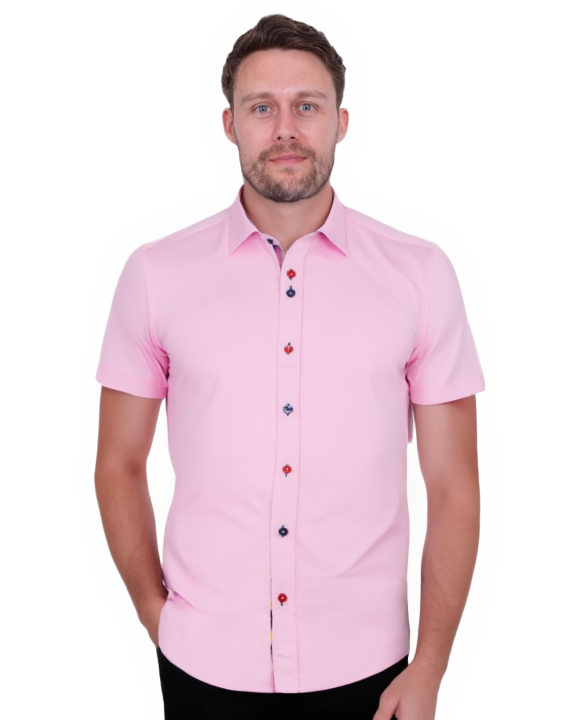 Introducing the Pink Plain Colourful Buttons Short Sleeve Shirt, a stylish addition to your wardrobe. This shirt features a unique collar tip design that adds a touch of sophistication.