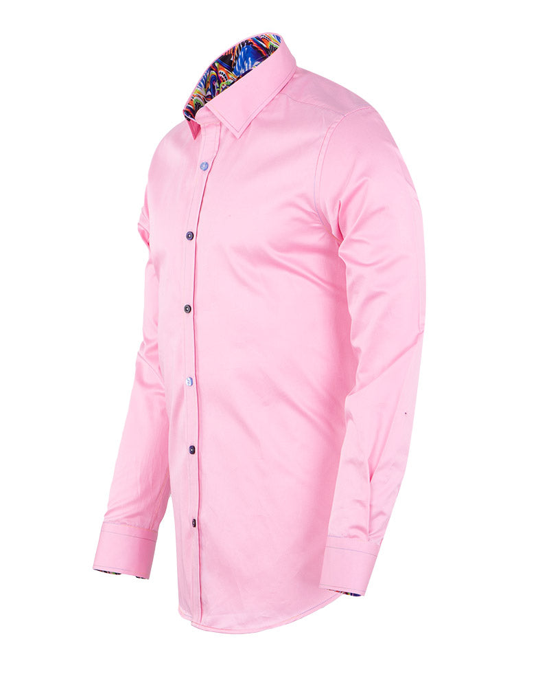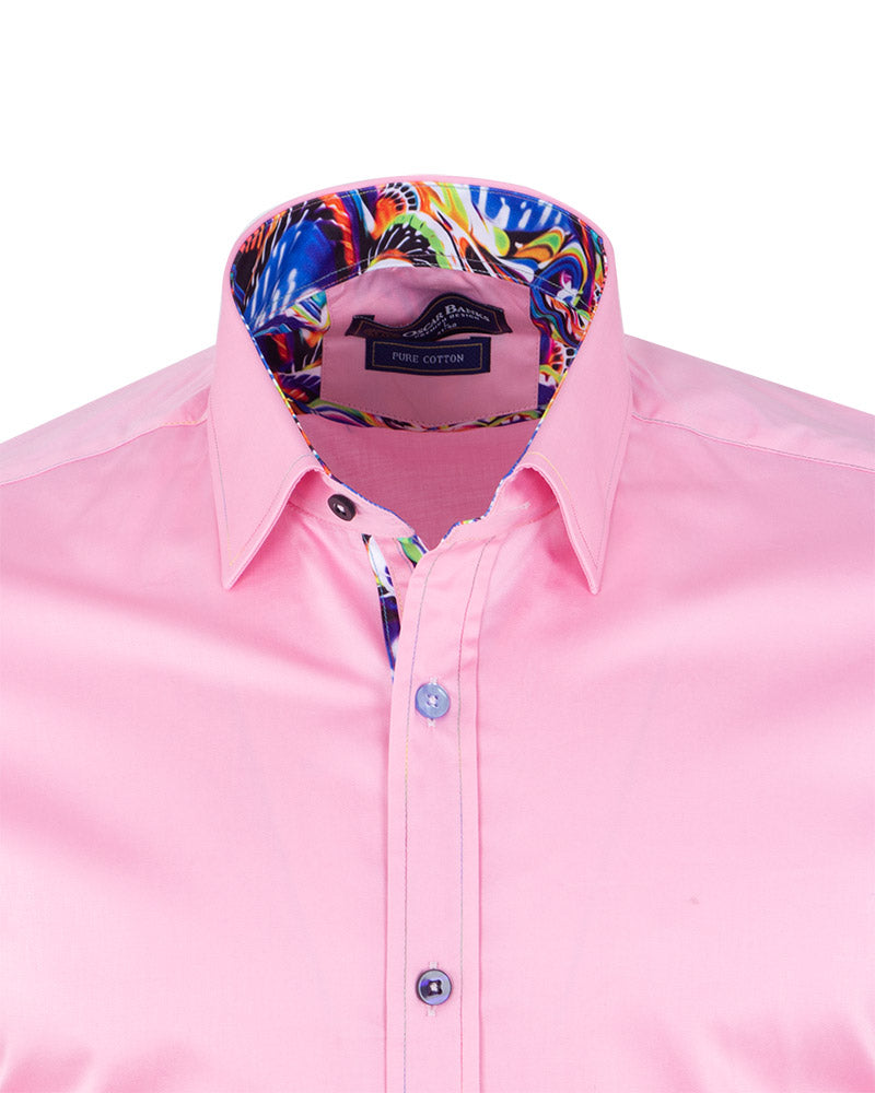 Pink Plain Colourful Stitching & Button Pure Cotton Shirt