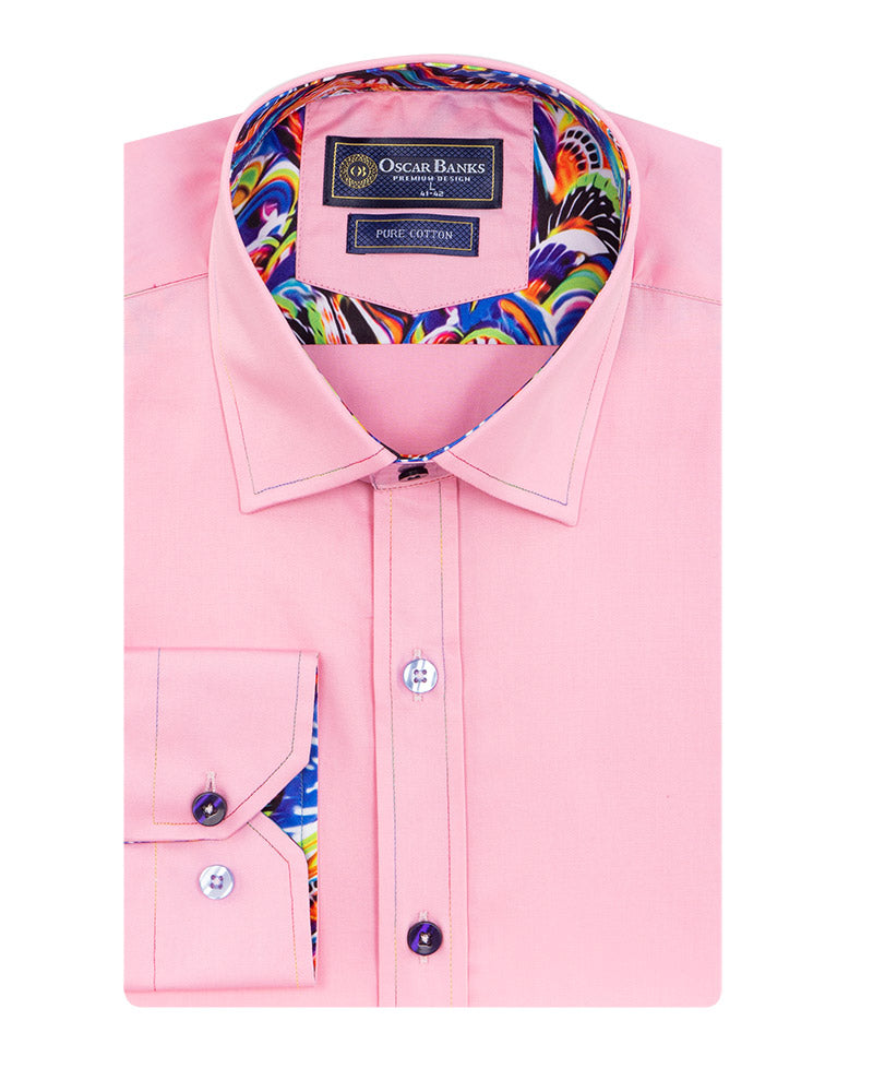 Introducing the Pink Plain Colourful Stitching & Button Pure Cotton Shirt, a perfect blend of style and comfort. This shirt features a plain panel design, making it versatile for various occasions.