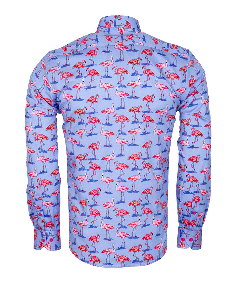 Blue Flamingo Print Men's Shirt with Matching Handkerchief