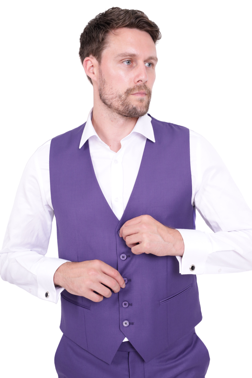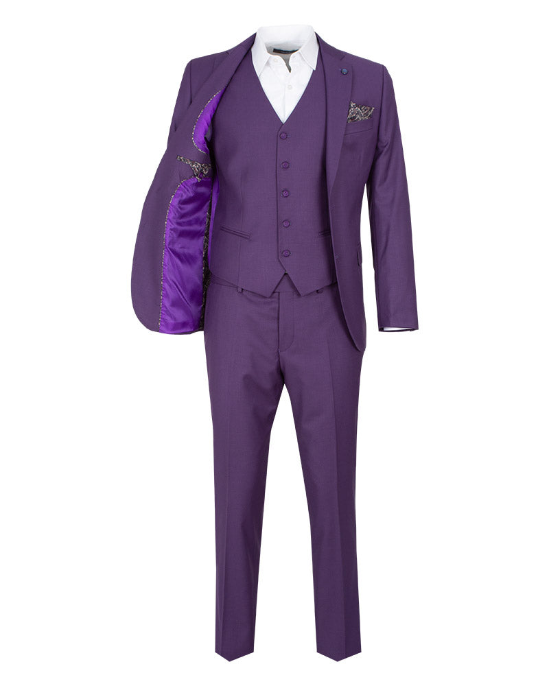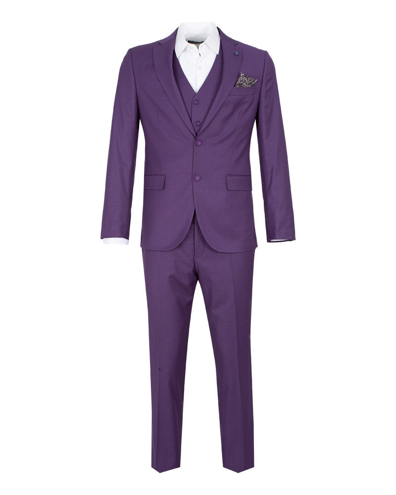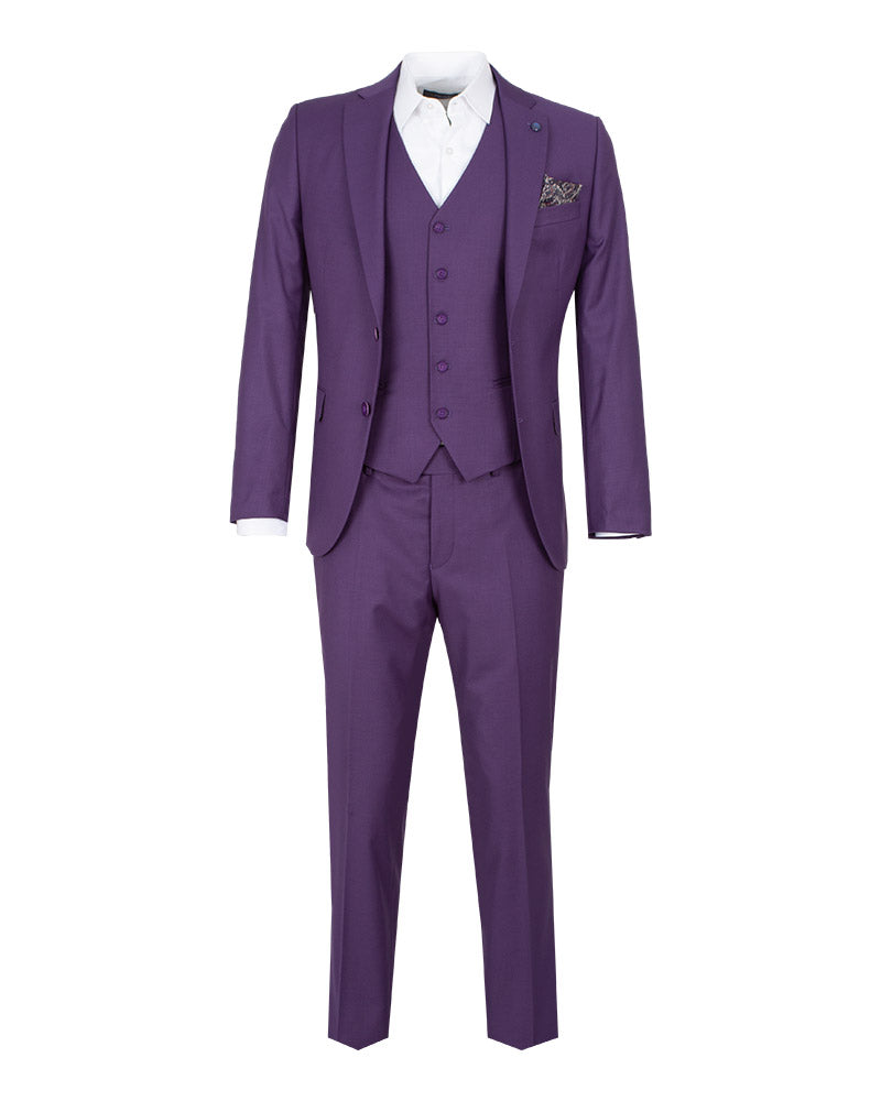 Introducing the Purple Classic Plain 3 Piece Men's Suit, a timeless addition to any wardrobe. This suit features a classic design that is perfect for formal occasions or special events.