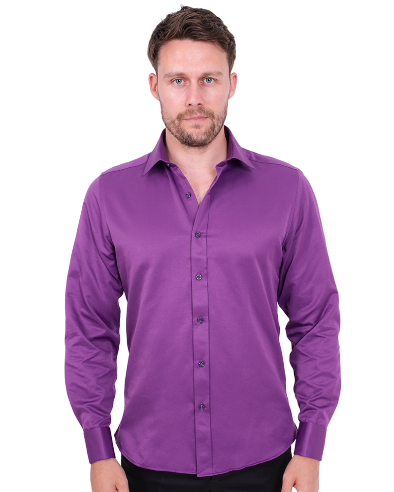 Purple Plain Double Cuff Shirt