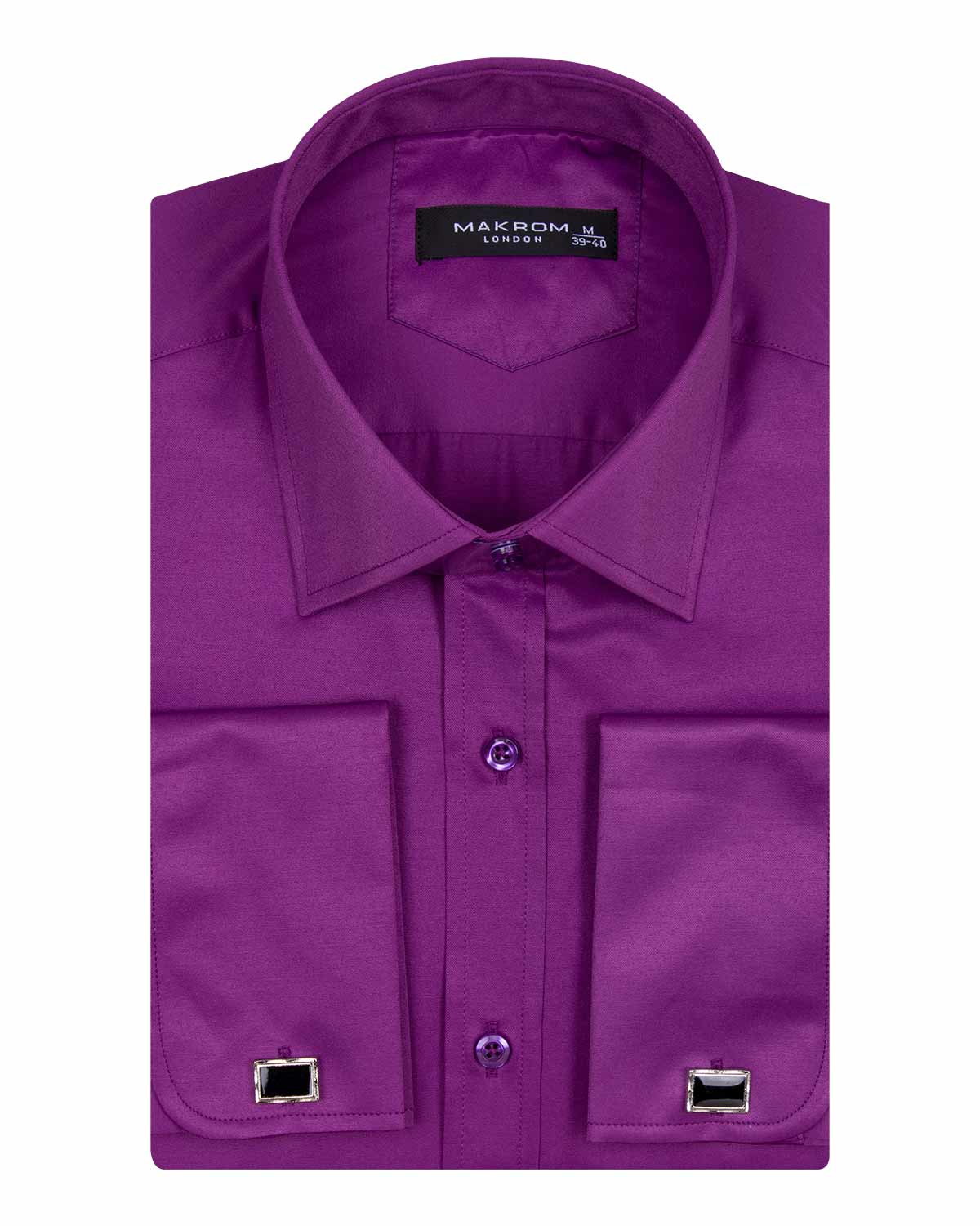 Introducing the Purple Classic Plain Double Cuff Shirt, a perfect blend of style and comfort. This shirt features a tapered fit, ensuring a sleek silhouette that flatters any body type. Please refer to the size chart for the best fit.